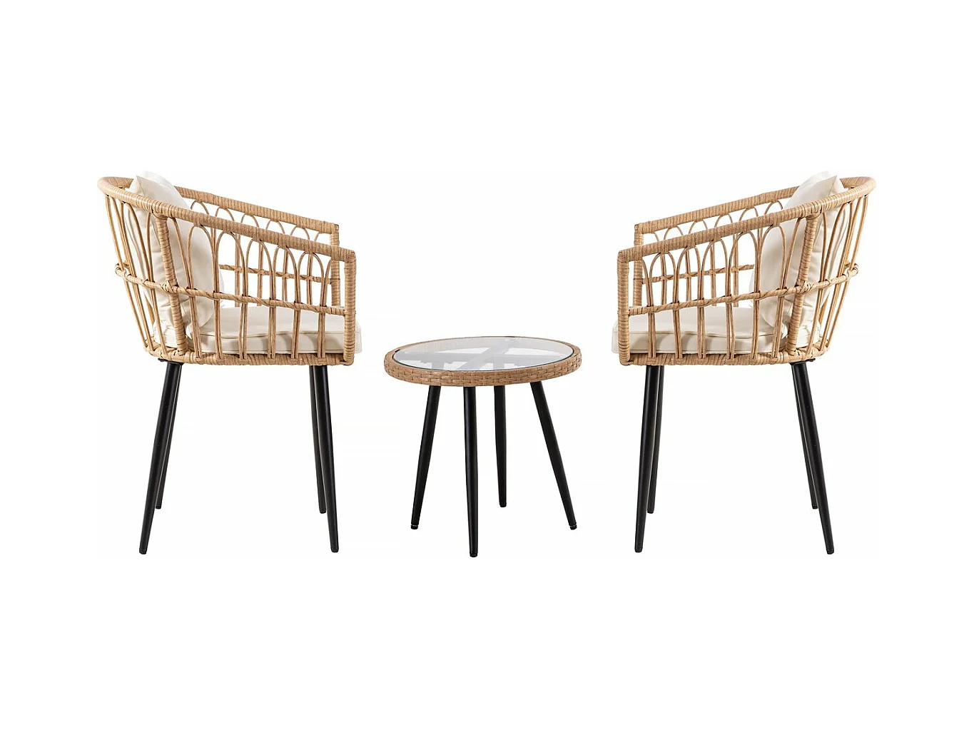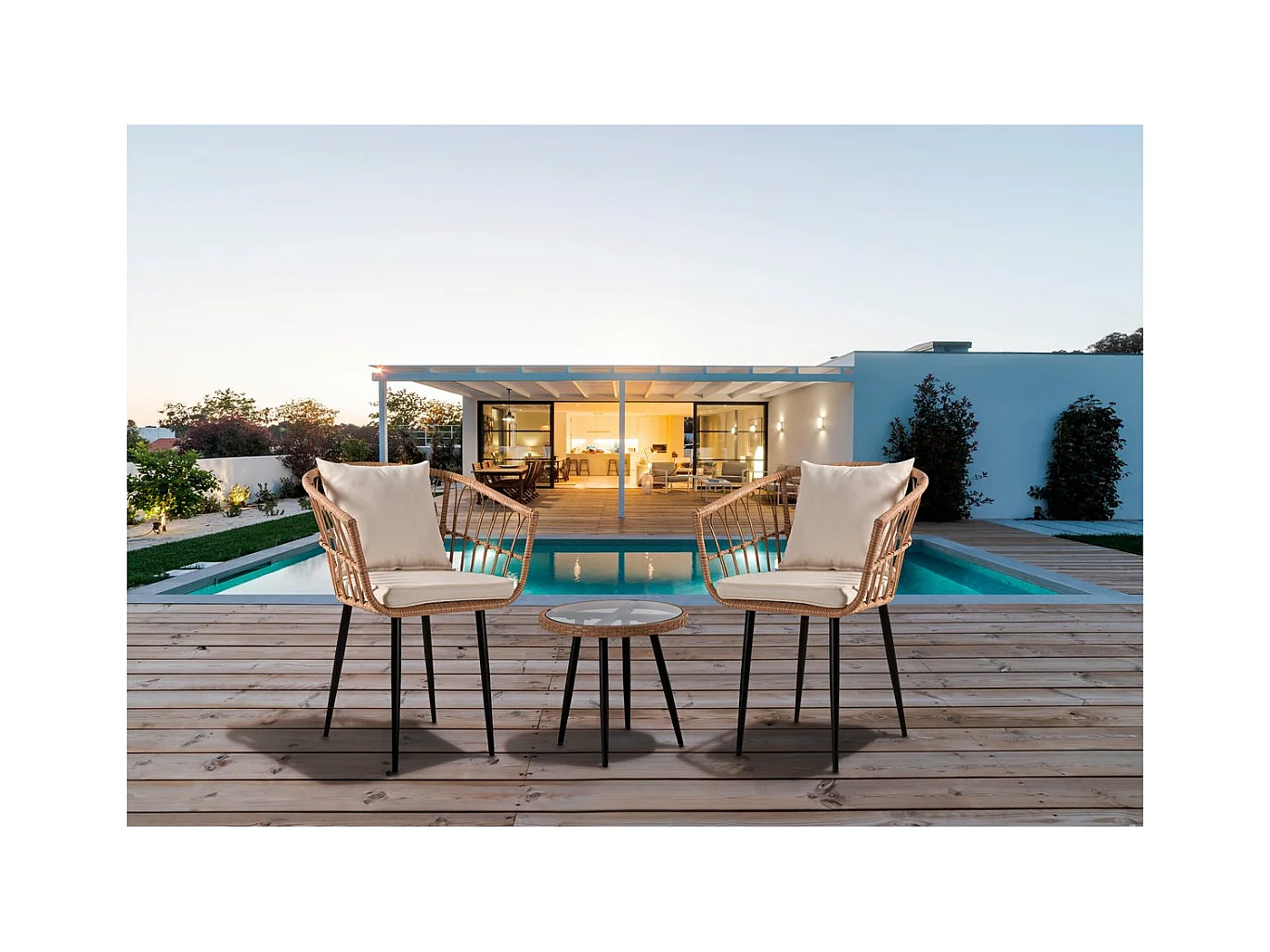 Conjunto de jardim em vime "Vela" para 2 pessoas - Preto/Bambu ou Castanho