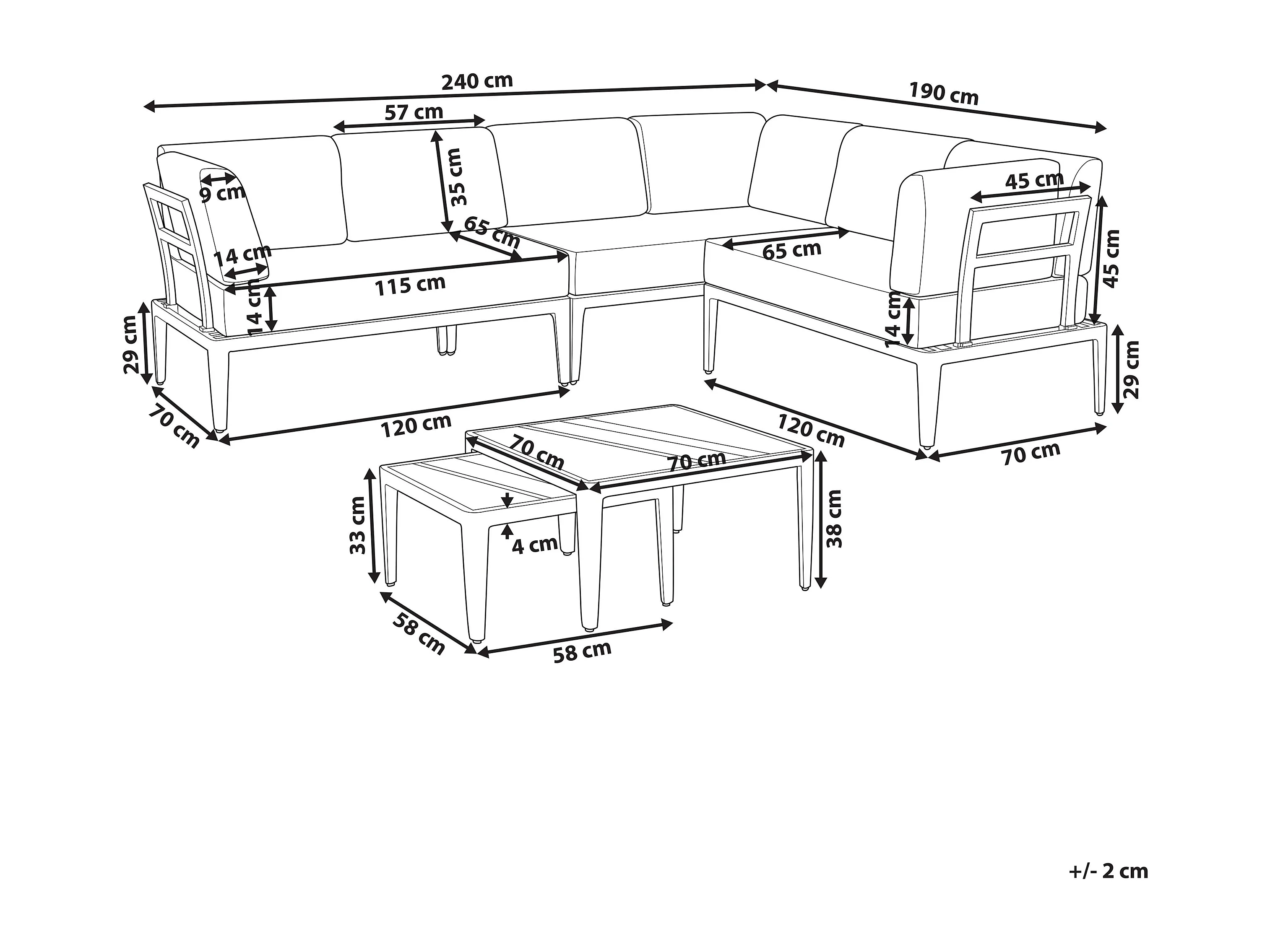 Conjunto de sofás de jardim de canto 6 lugares RIMA III à esquerda Metal Creme
