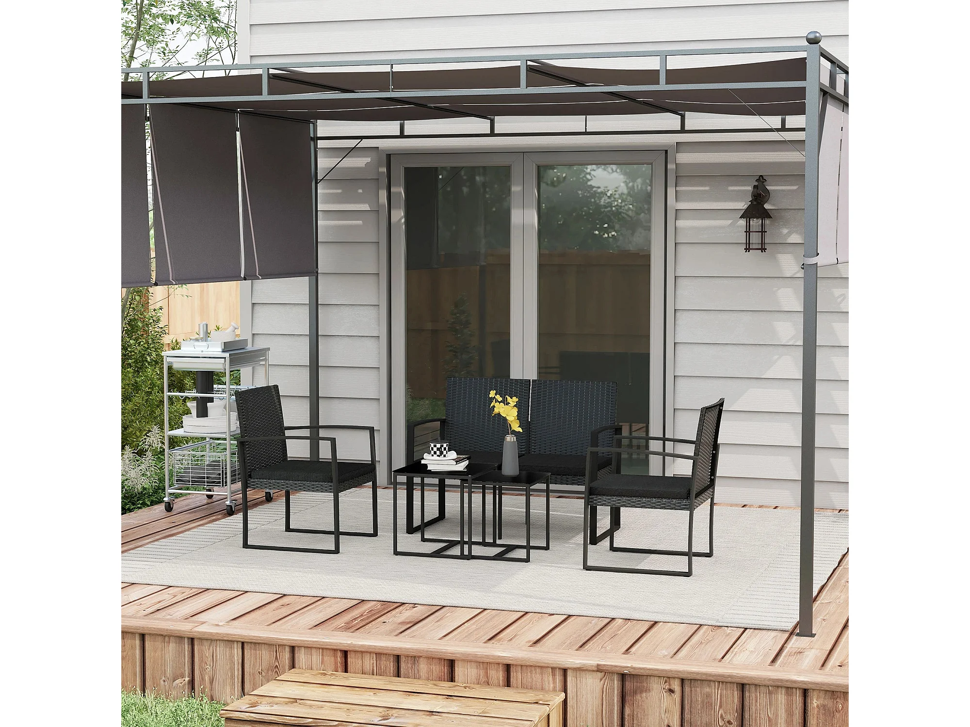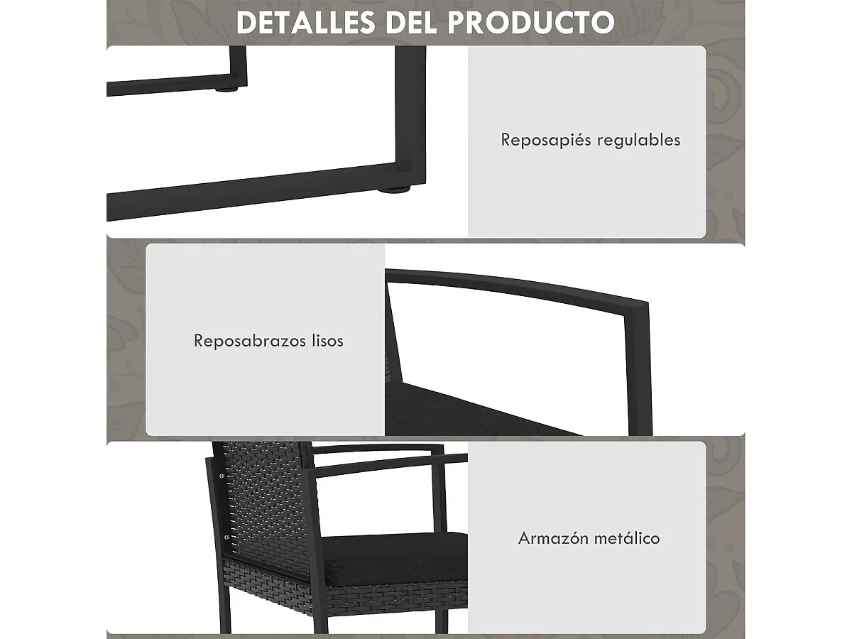 Conjunto de Jardim Torino 5 Peças em Vime PE com Sofá e Mesas de Vidro Temperado