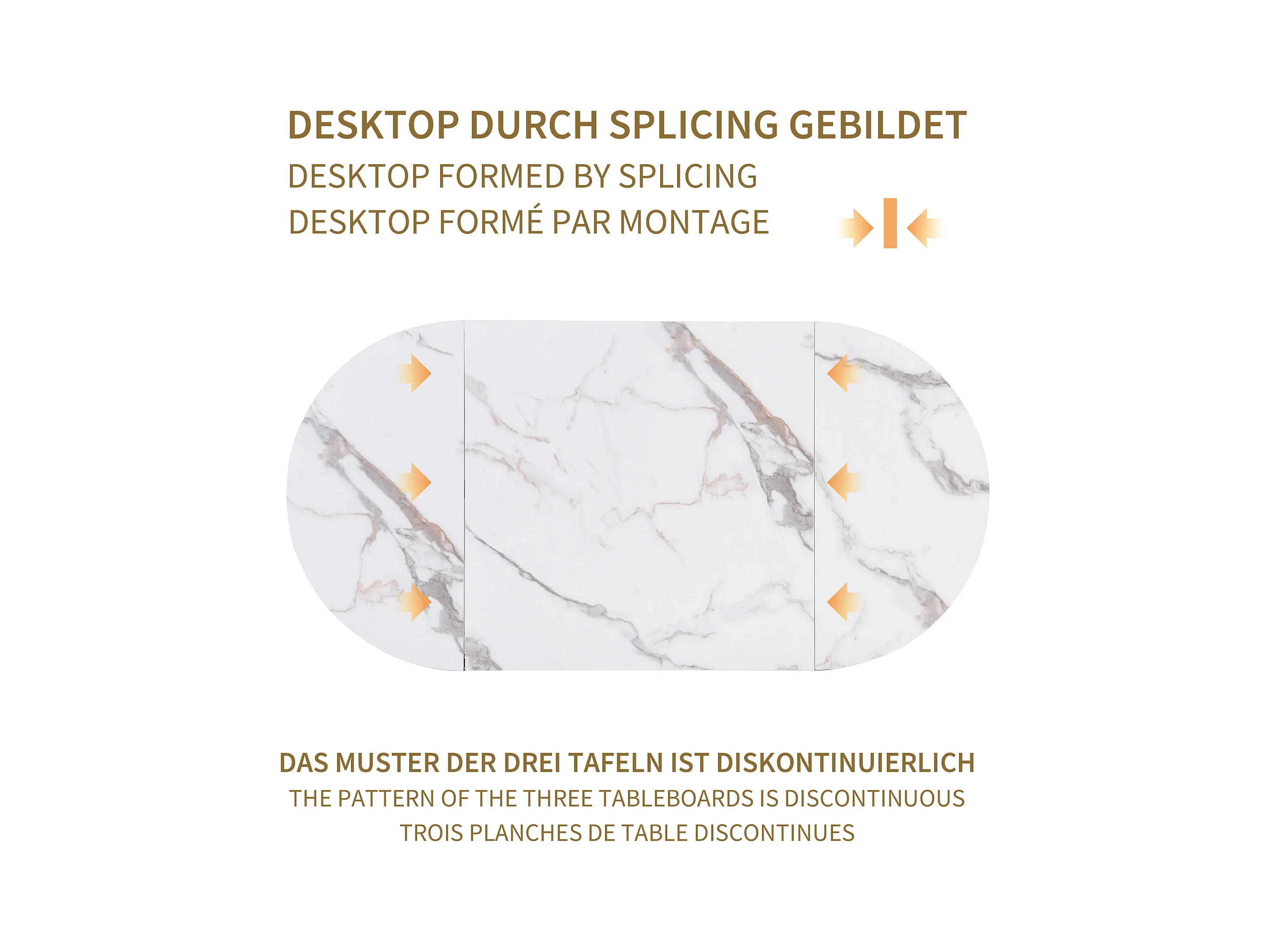 Mesa oval para 6 pessoas + 6 bancos - Efeito mármore - MDF e aço - Carga máx. 120 kg - 140x70x74 cm