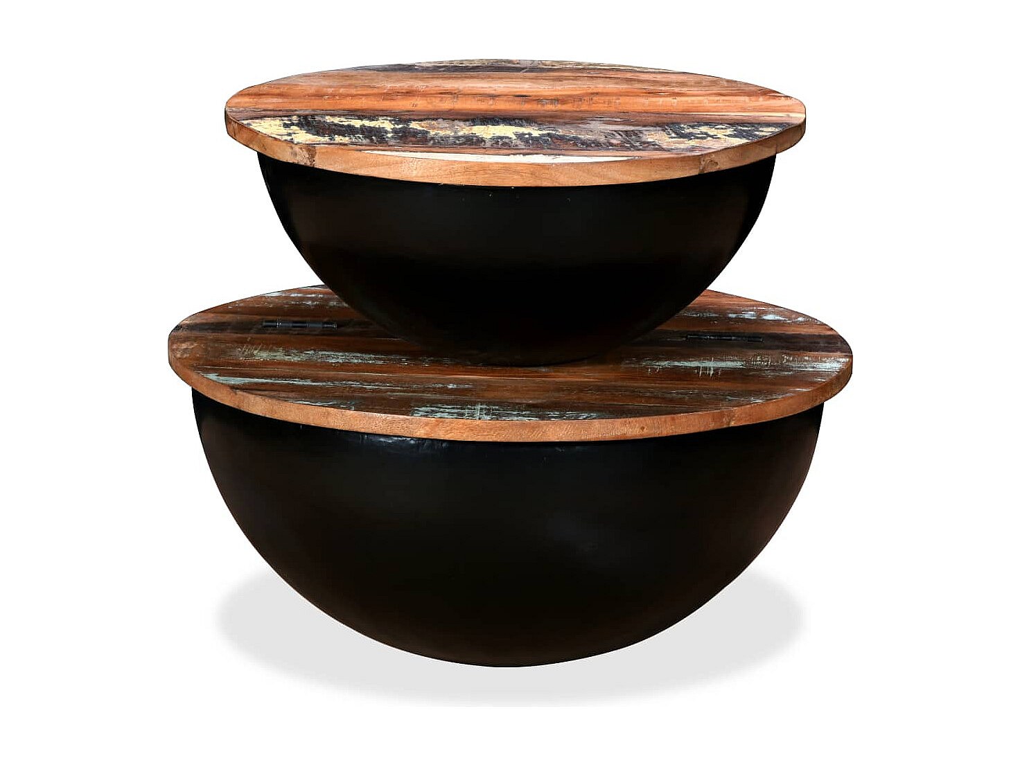 Conj. mesas centro 2 peças madeira reciclada preto forma tigela