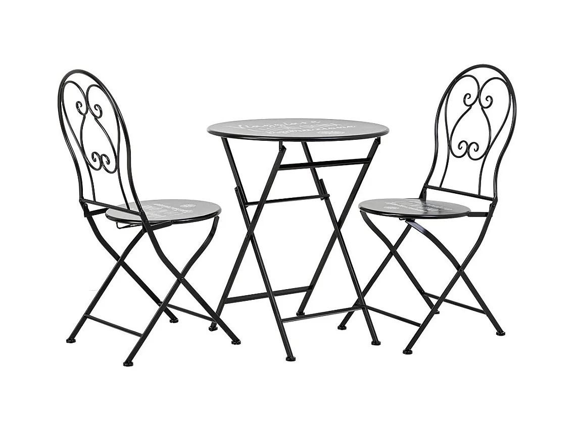 Conjunto de mesa e 2 cadeiras de ferro forjado preto