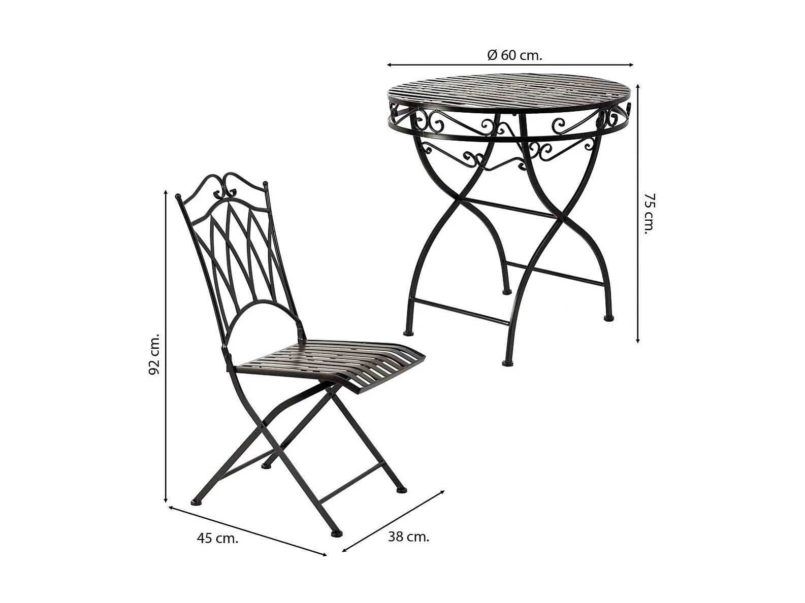 Conjunto de mesa e 2 cadeiras de ferro forjado preto