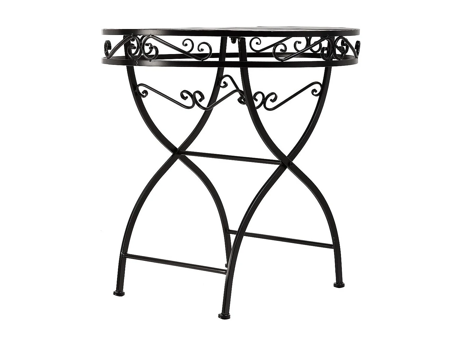 Conjunto de mesa e duas cadeiras em mosaico preto e ferro forjado mesa: D60x75h - cadeira (2): D38x46-90h