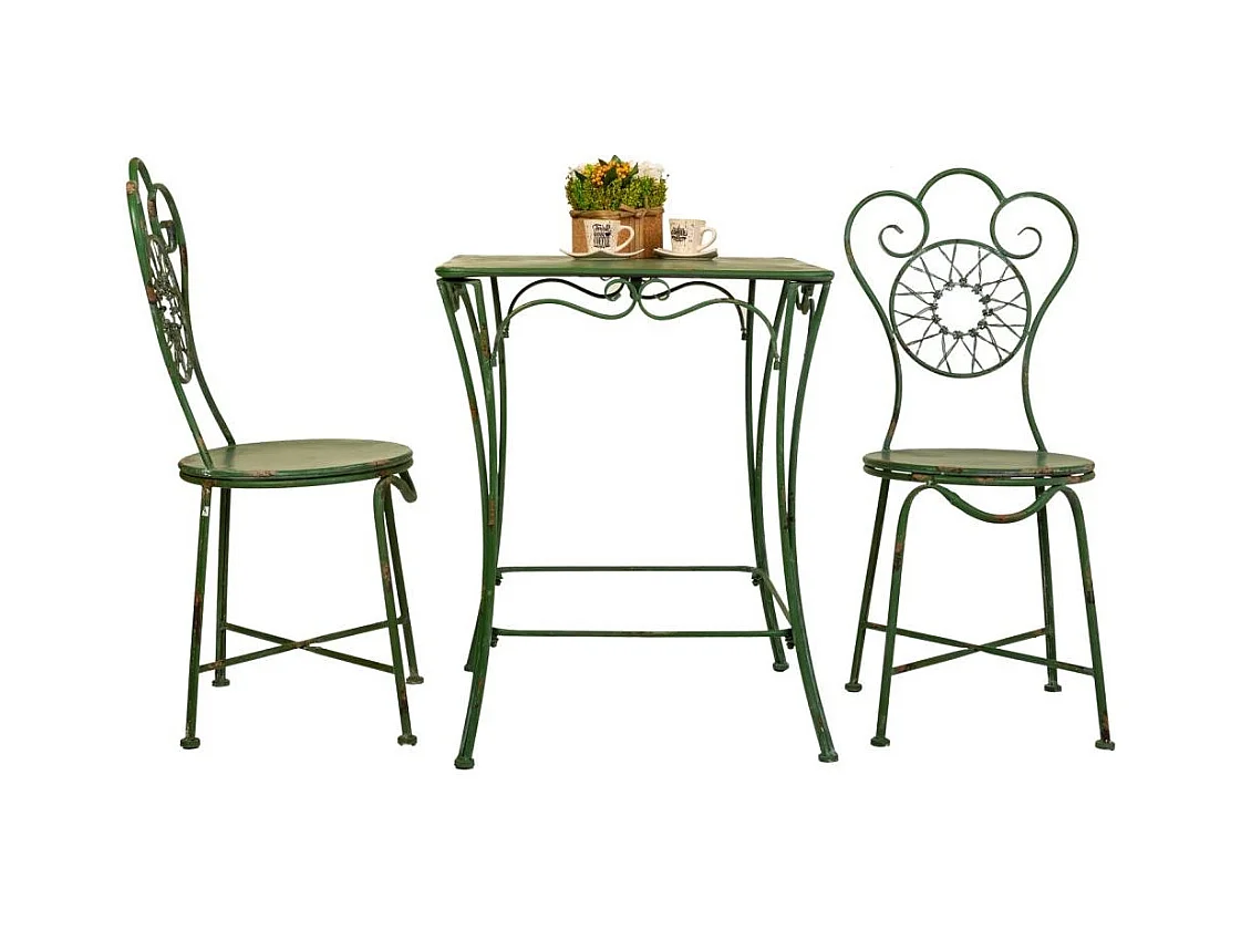 Conjunto de mesa+cadeiras em ferro forjado: (2)42x47x92h-61x61x75,5h