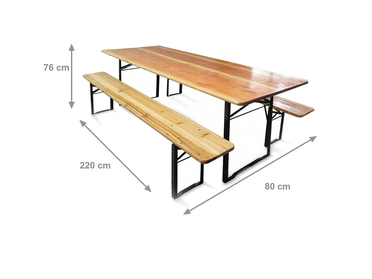 Conjunto de mesa e bancos dobráveis para cervejaria, cor marrom, Medidas da mesa 220 x 76 x 80 cm, Medidas do banco 220 x 46 x 24 cm