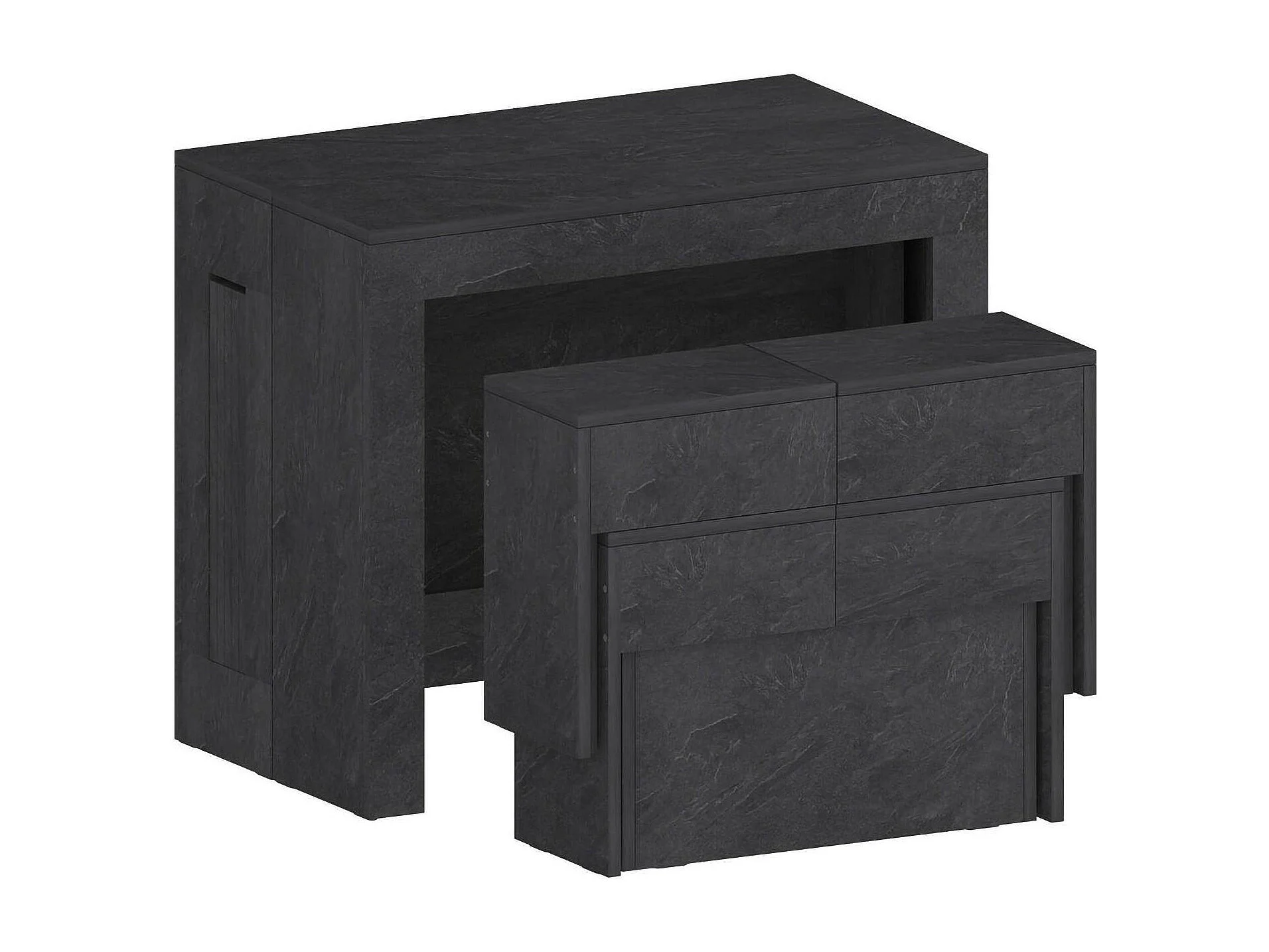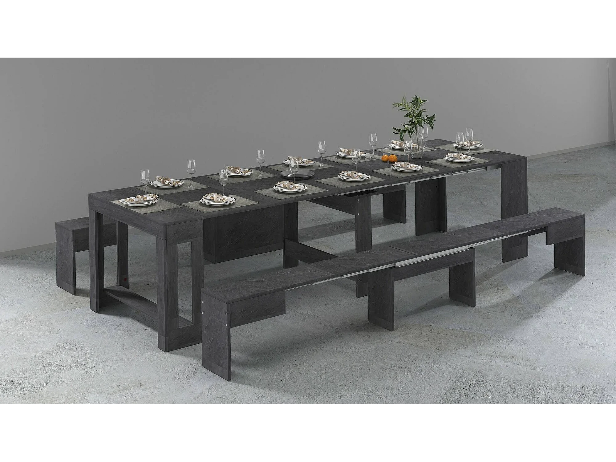 Conjunto de mesa e cadeiras Dadamoni, Composição polivalente, Conjunto com consola e 2 bancos extensíveis, 100% Fabricado em Itália, 66x25h45 cm, Ardósia