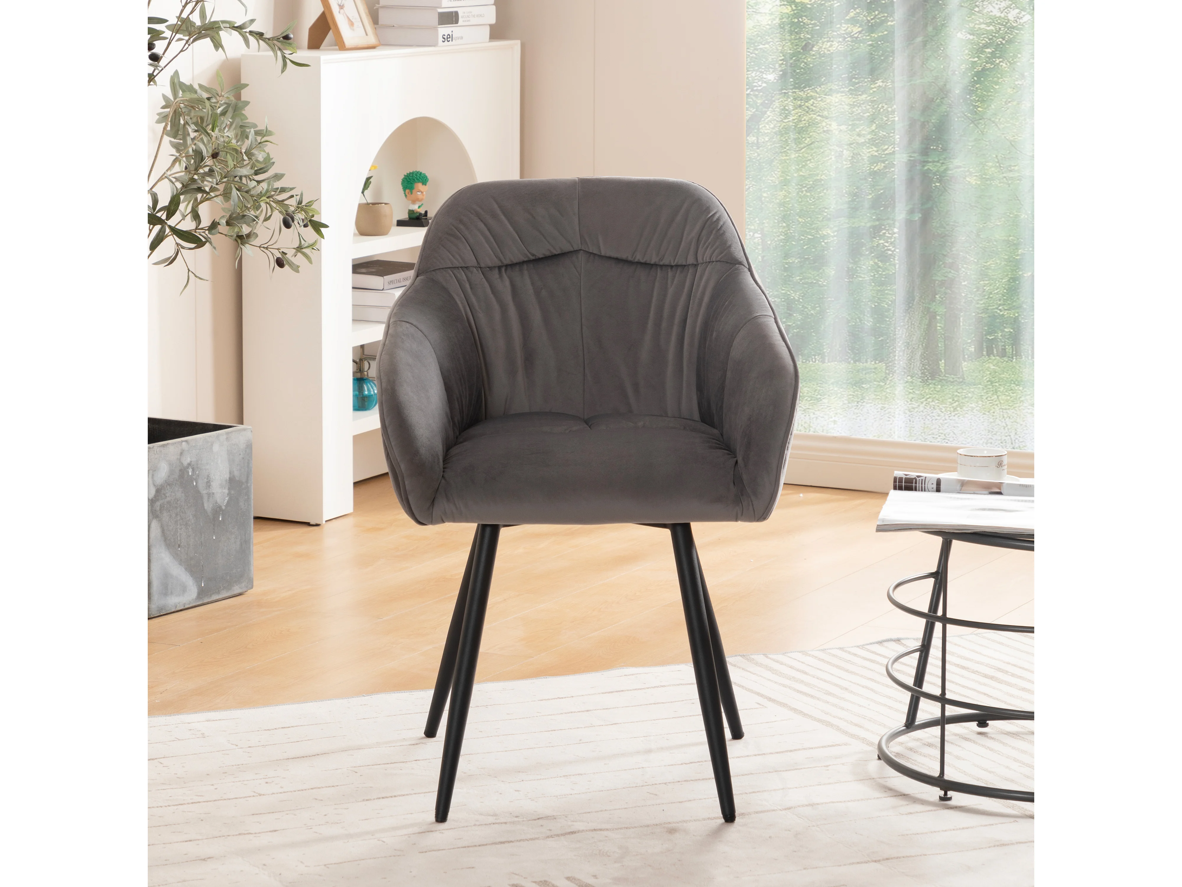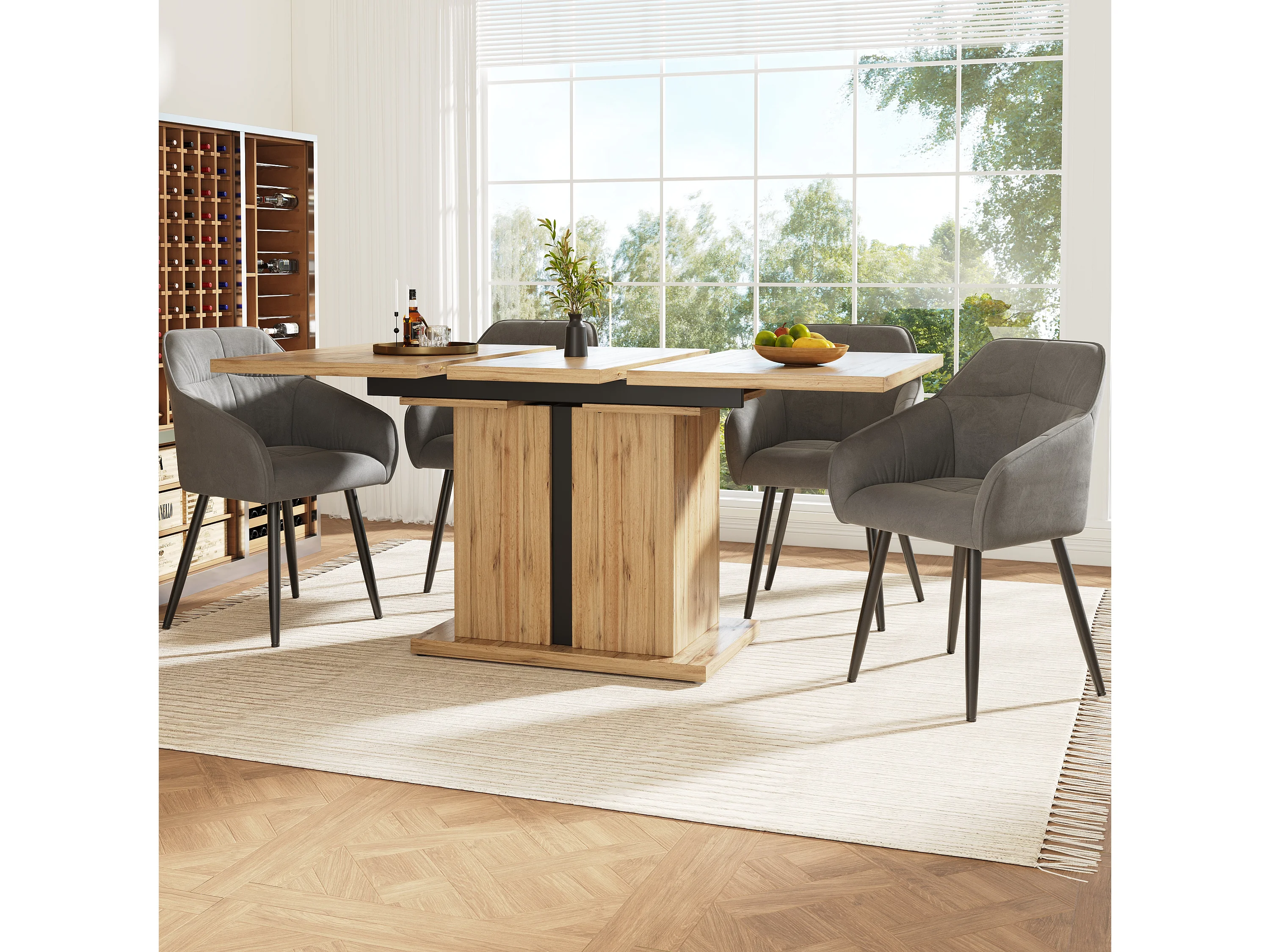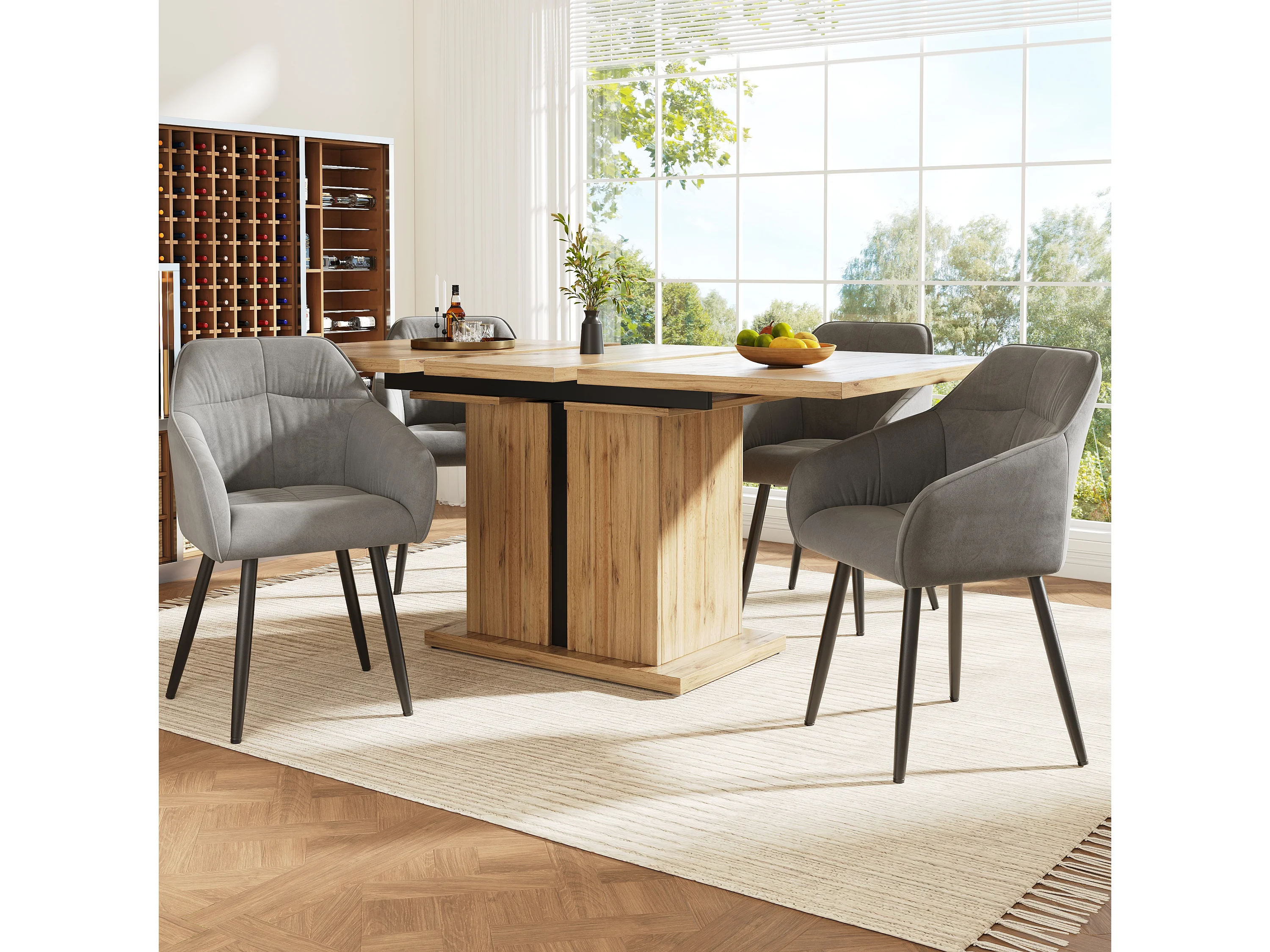 Conjunto de mesa extensível + 4 cadeiras em veludo cinza - 119/158,5 x 80 x 75 cm - Madeira MDF - Pés em coluna T - Natural