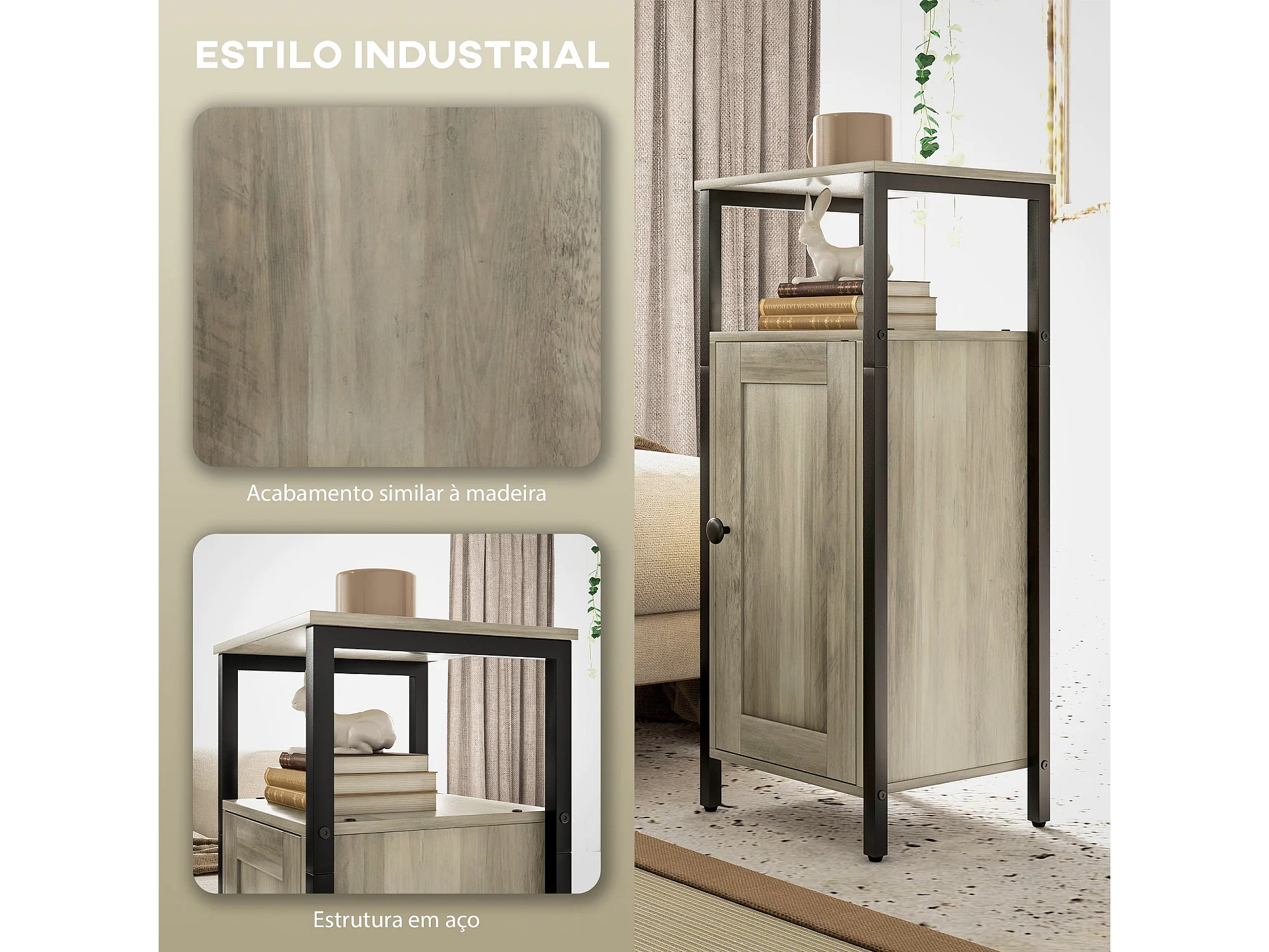 Conjunto de Mesas Auxiliares HOMCOM: Estilo Industrial com Porta Magnética e Prateleira Ajustável