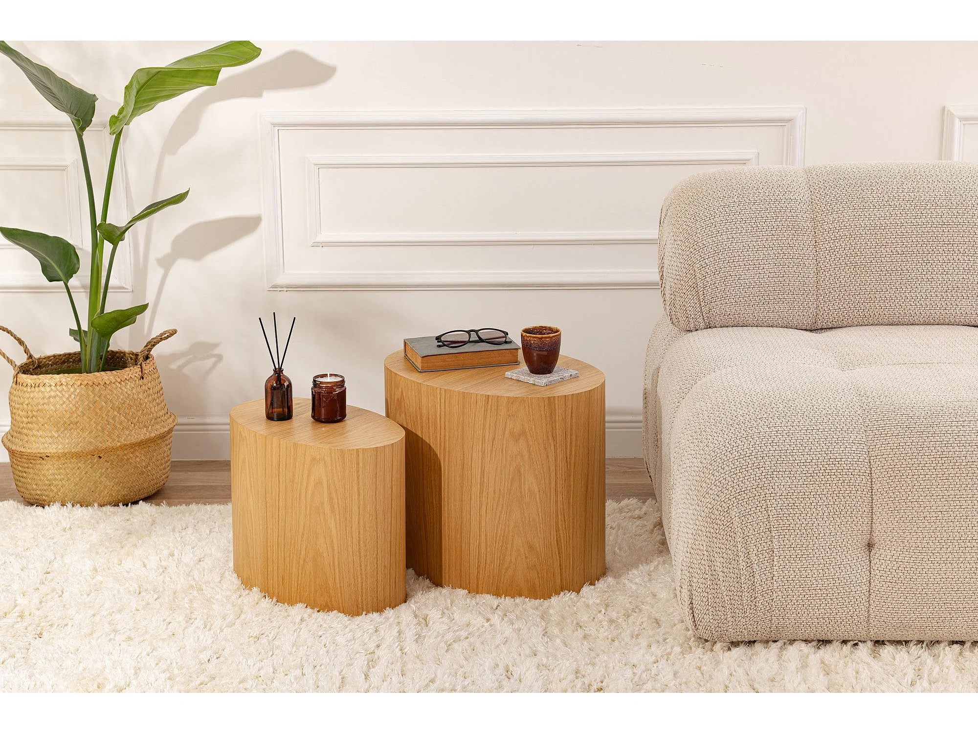 Conjunto de Mesas de Apoio Elipse - Carvalho Natural, 2 Peças, Design Elegante e Funcional