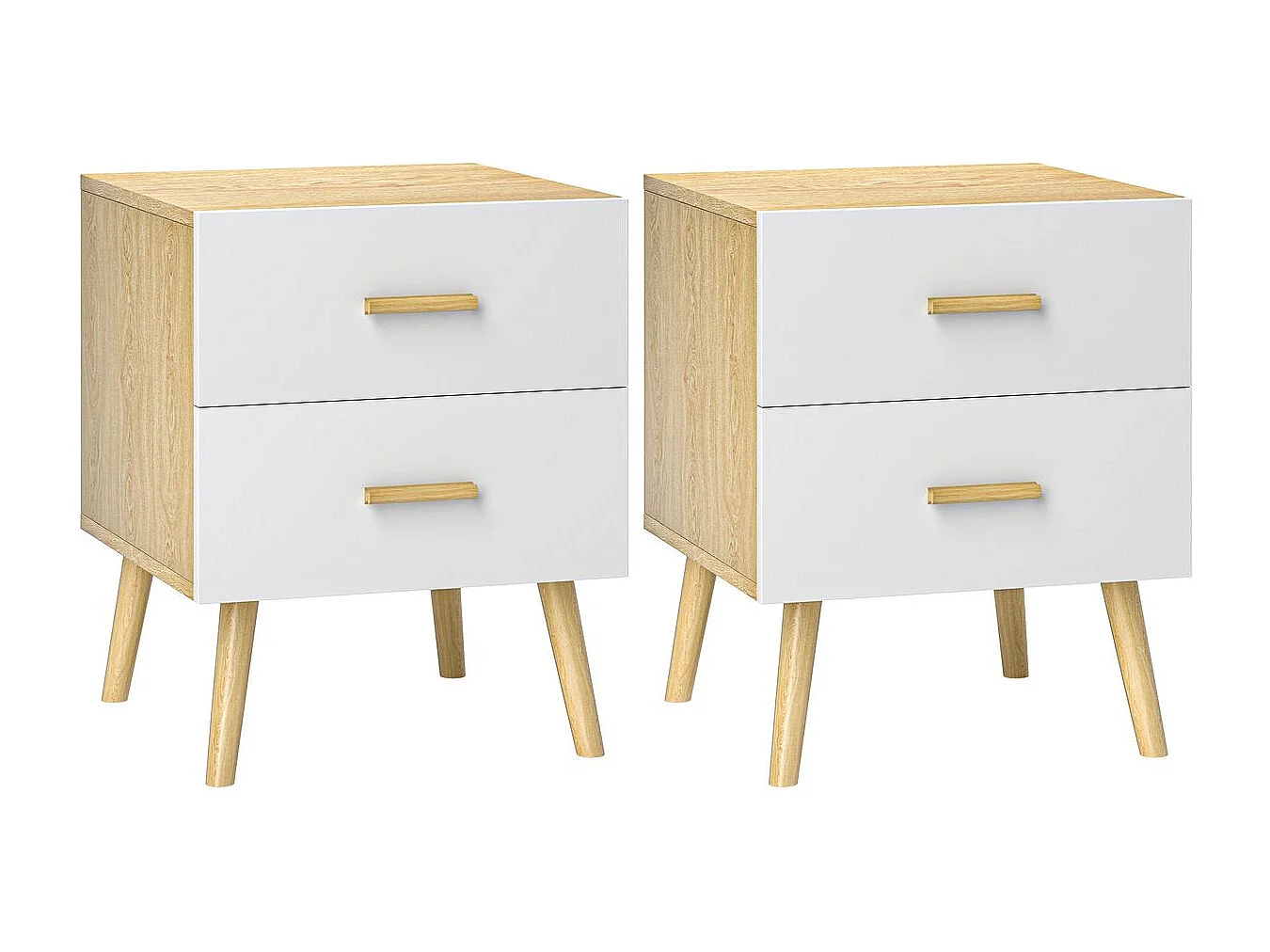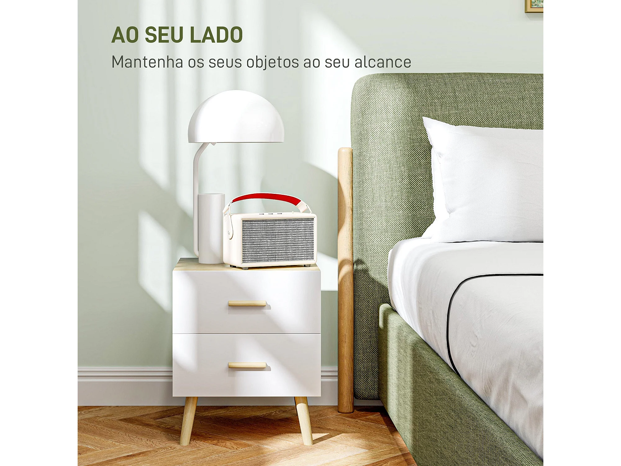 Conjunto de Mesas de Cabeceira HOMCOM com 2 Gavetas em Madeira com Puxadores de Bambu