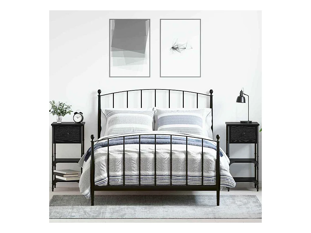 Conjunto de 2 mesas de cabeceira, cômoda, guarda-roupa, móveis de quarto, MDF preto 1402045