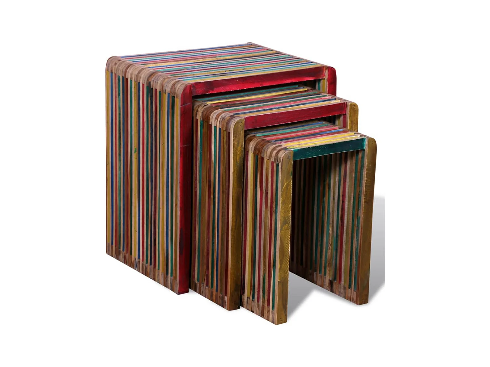 Conjunto de mesas de encastrar 3 peças teca reciclada colorida