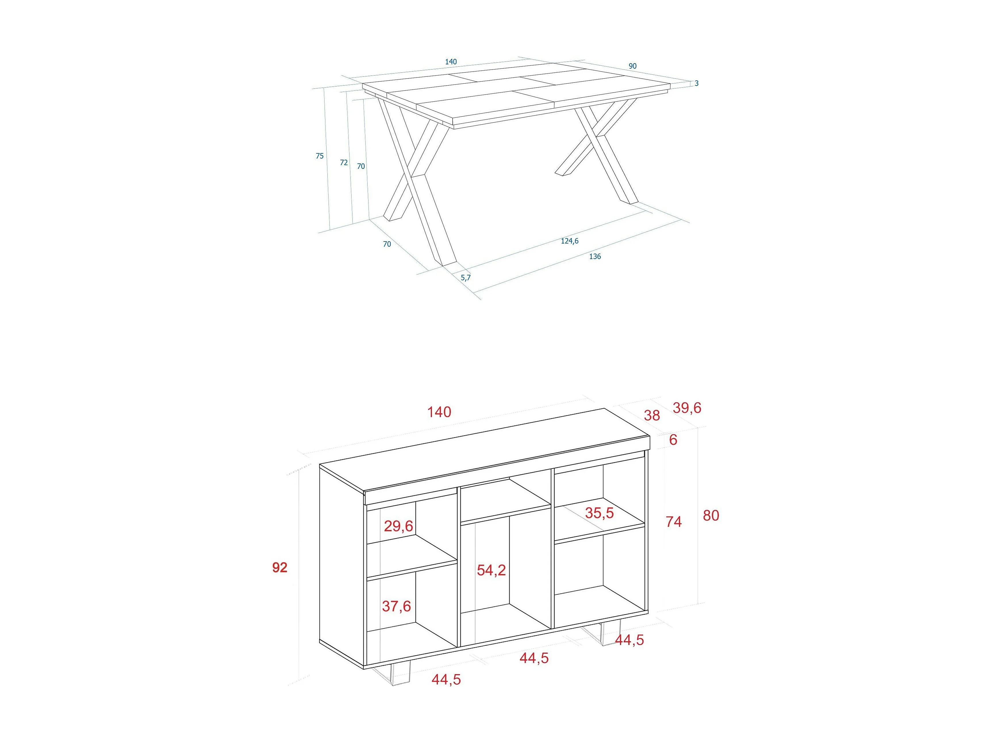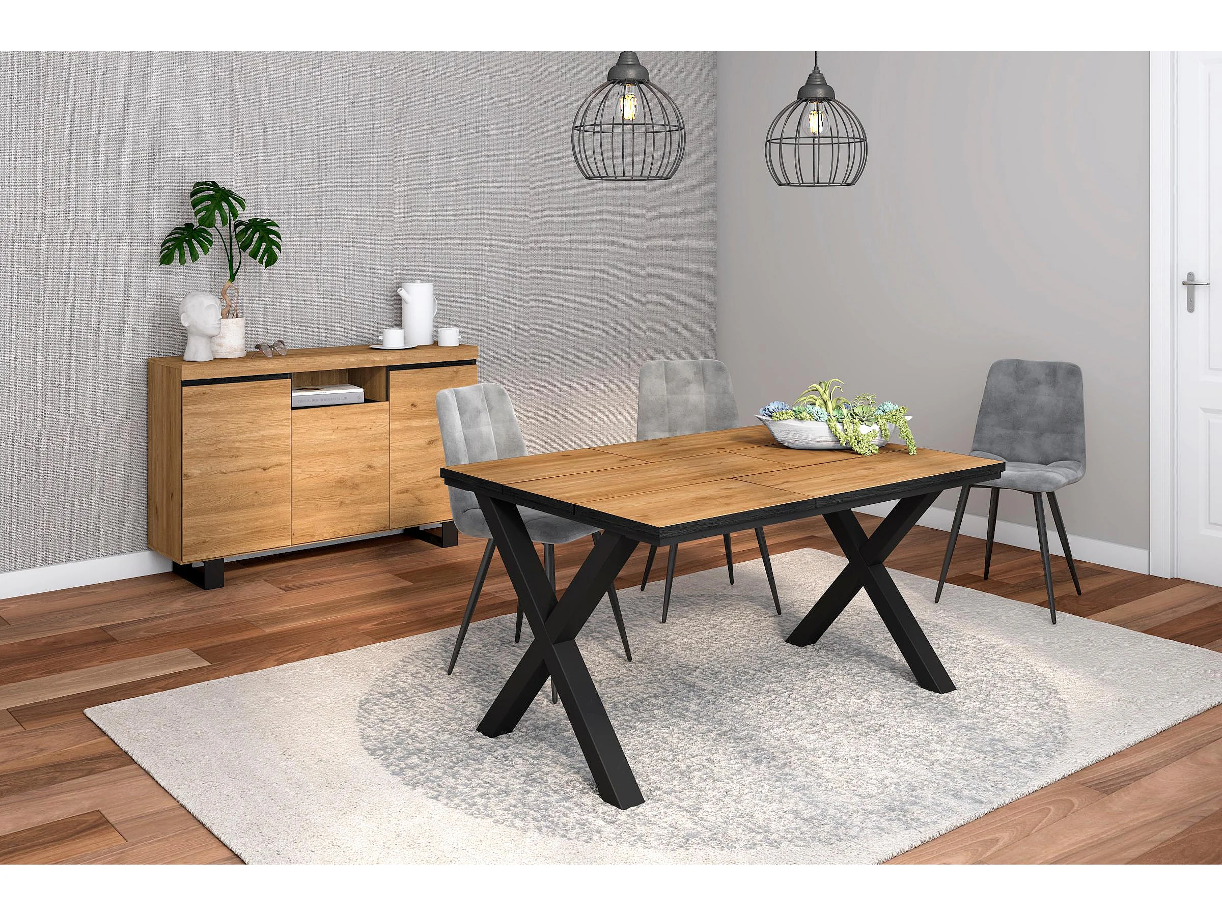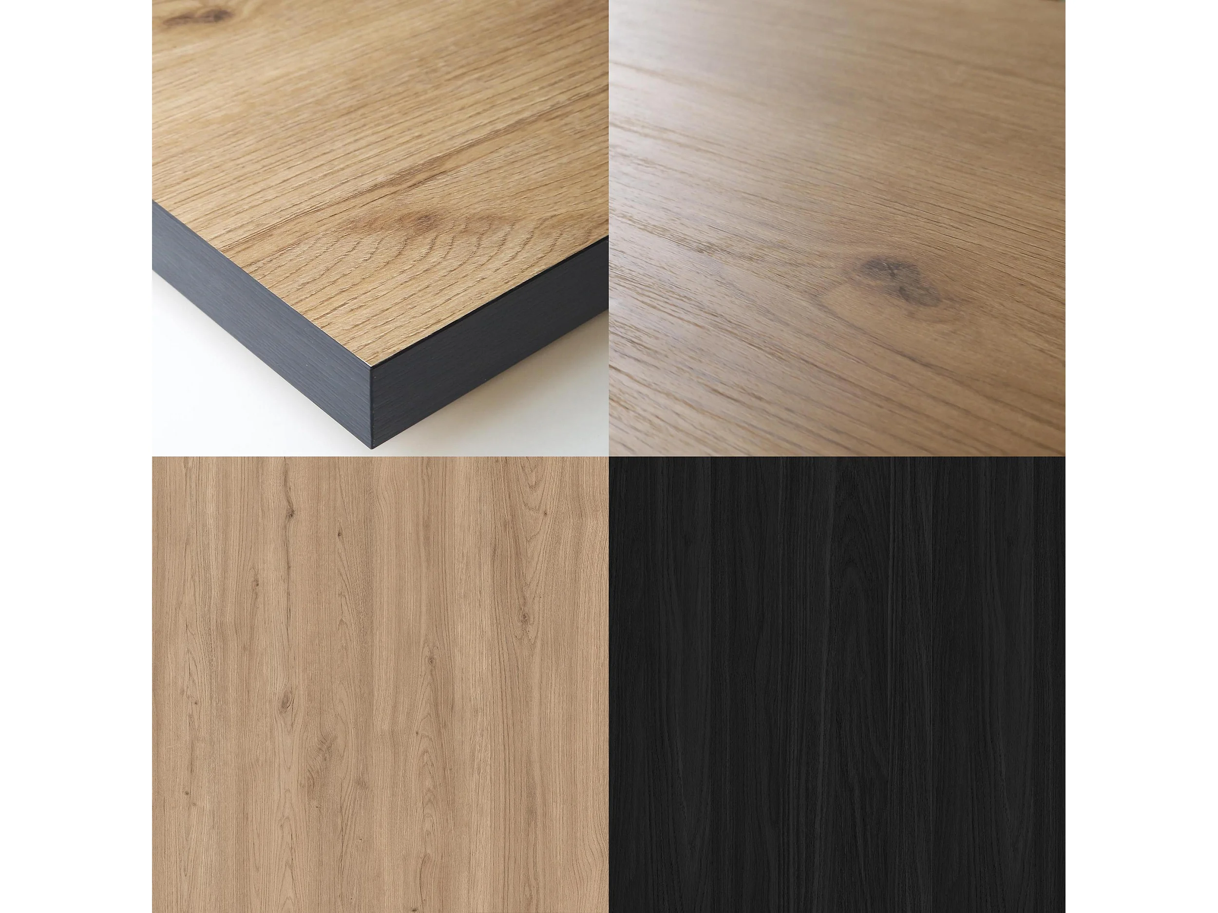 Conjunto de mobiliário para sala de estar, Mesa 140 Borda preta pés X 6 pessoas, Aparador / Buffet 140 Tall, Carvalho e Preto
