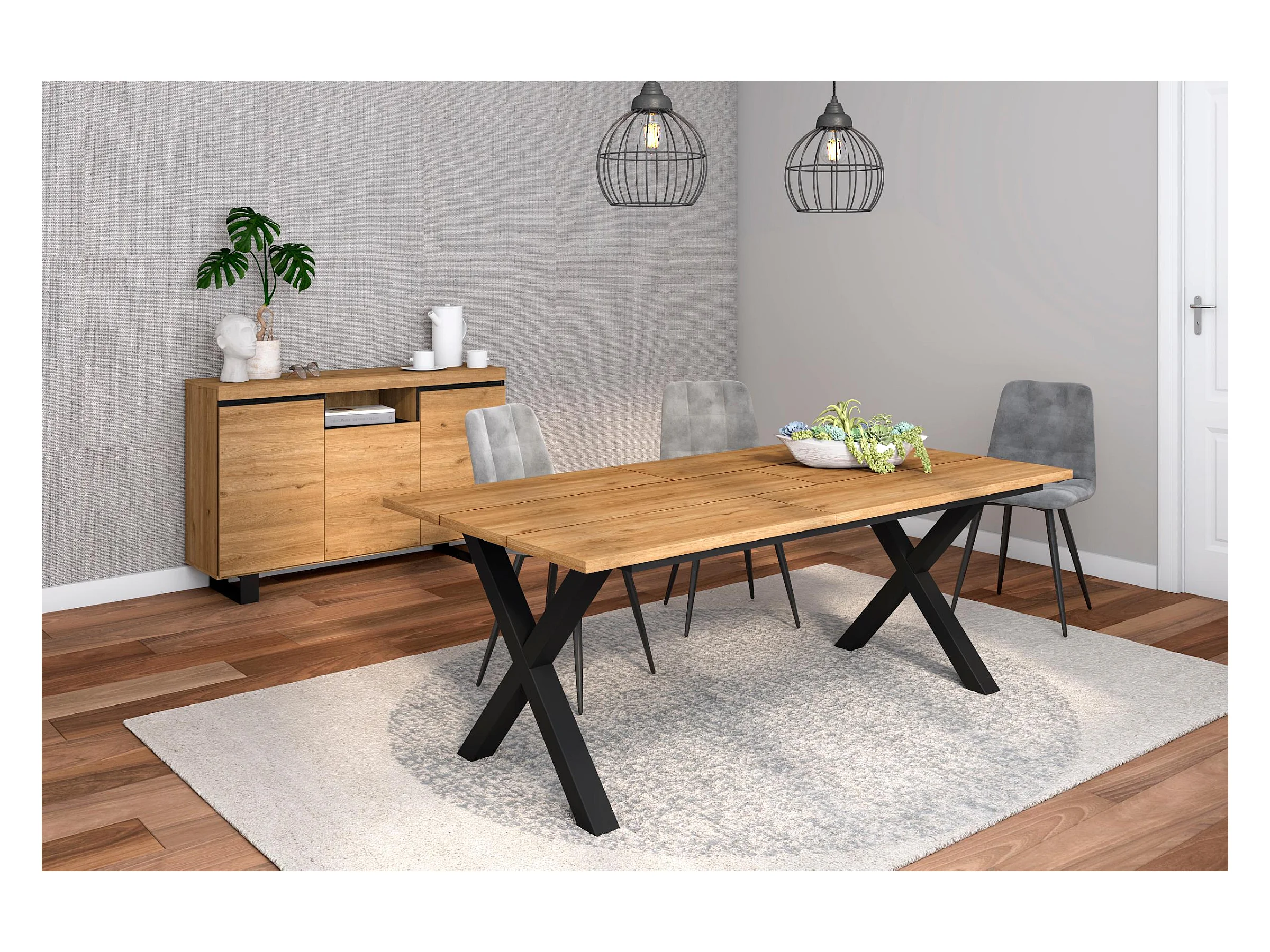 Conjunto de mobiliário para sala de estar, Mesa 200 pés X 10 pessoas, Aparador / Buffet 140 Tall, Carvalho, Preto, Estilo Industrial