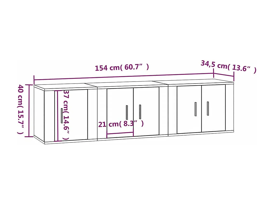 Conjunto de móveis armário aparador TV televisão sala de estar quarto sala de estar 3 peças madeira de engenharia branca brilhante 02_0024537