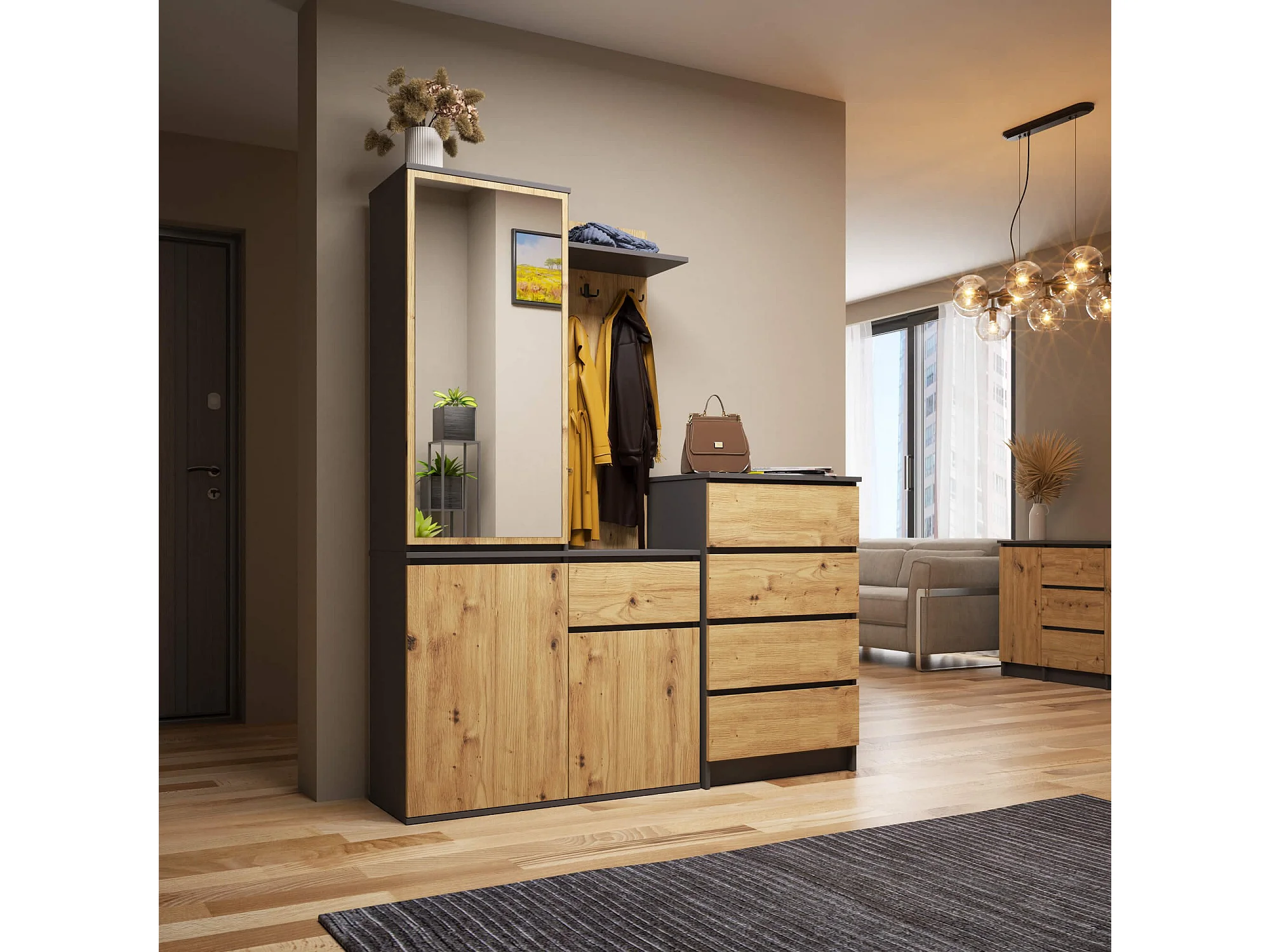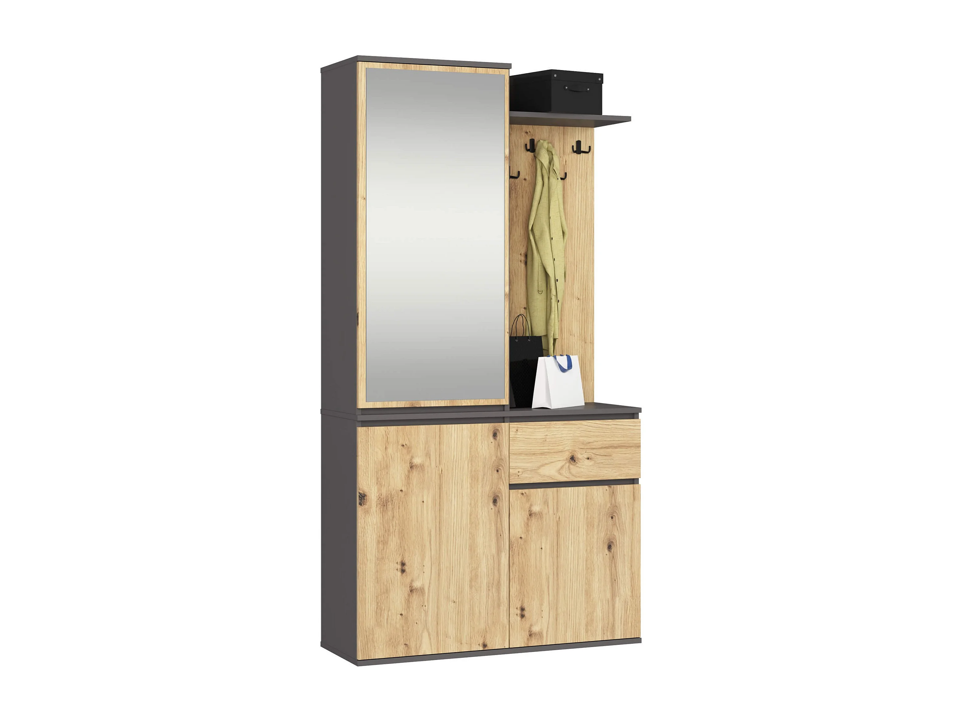 Conjunto de Móveis Clássicos ENTRO Hall Cinza Grafite/Carvalho Artisan