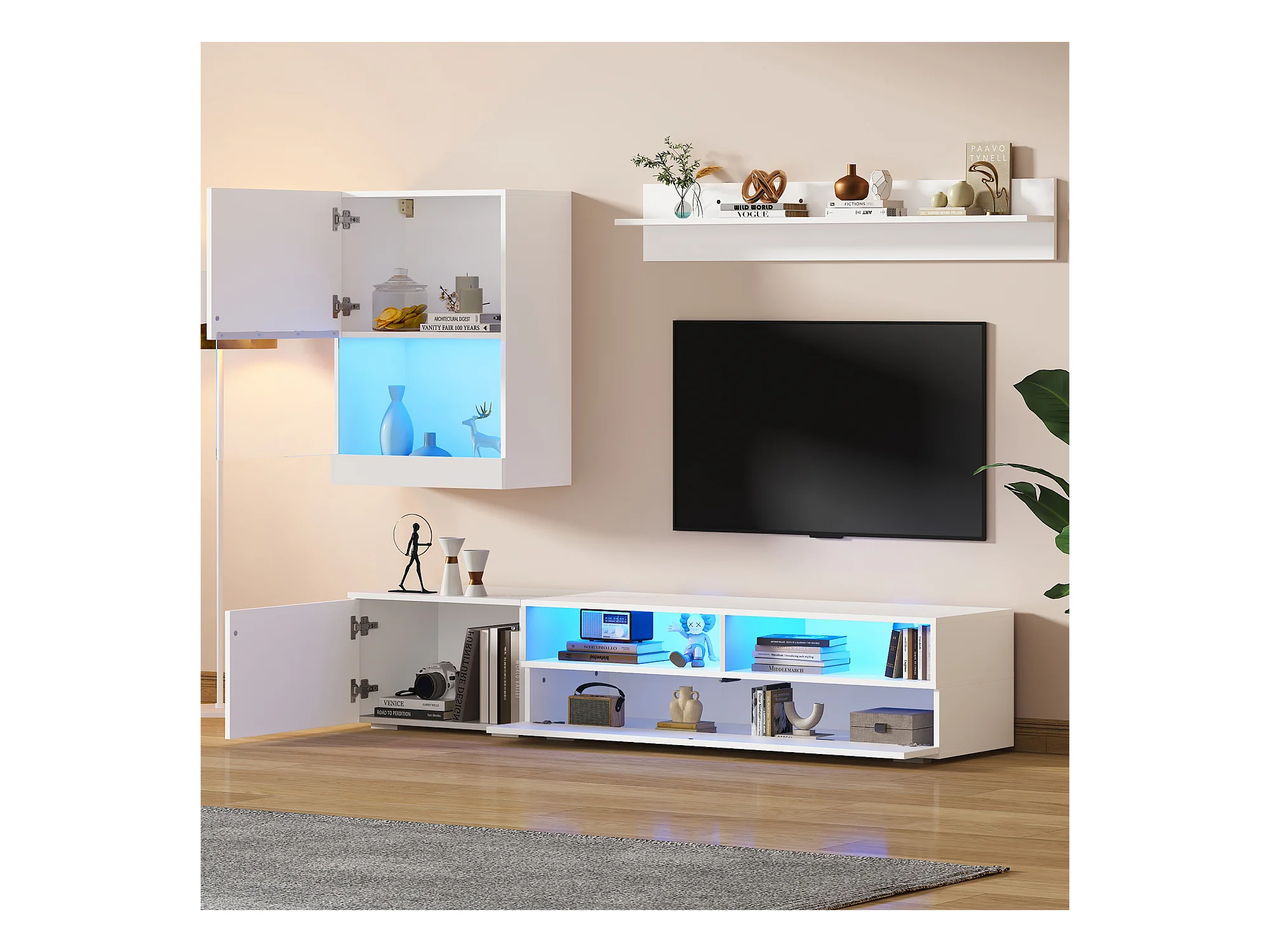 Conjunto de móvel para TV 3 peças - móvel para TV + móvel de parede + prateleira de parede - com iluminação LED e acabamento brilhante - branco