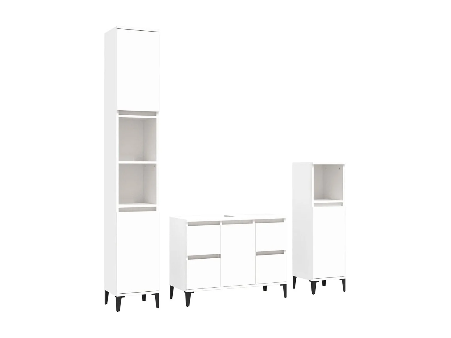 Conjunto de móveis de banheiro de madeira branca com 3 peças