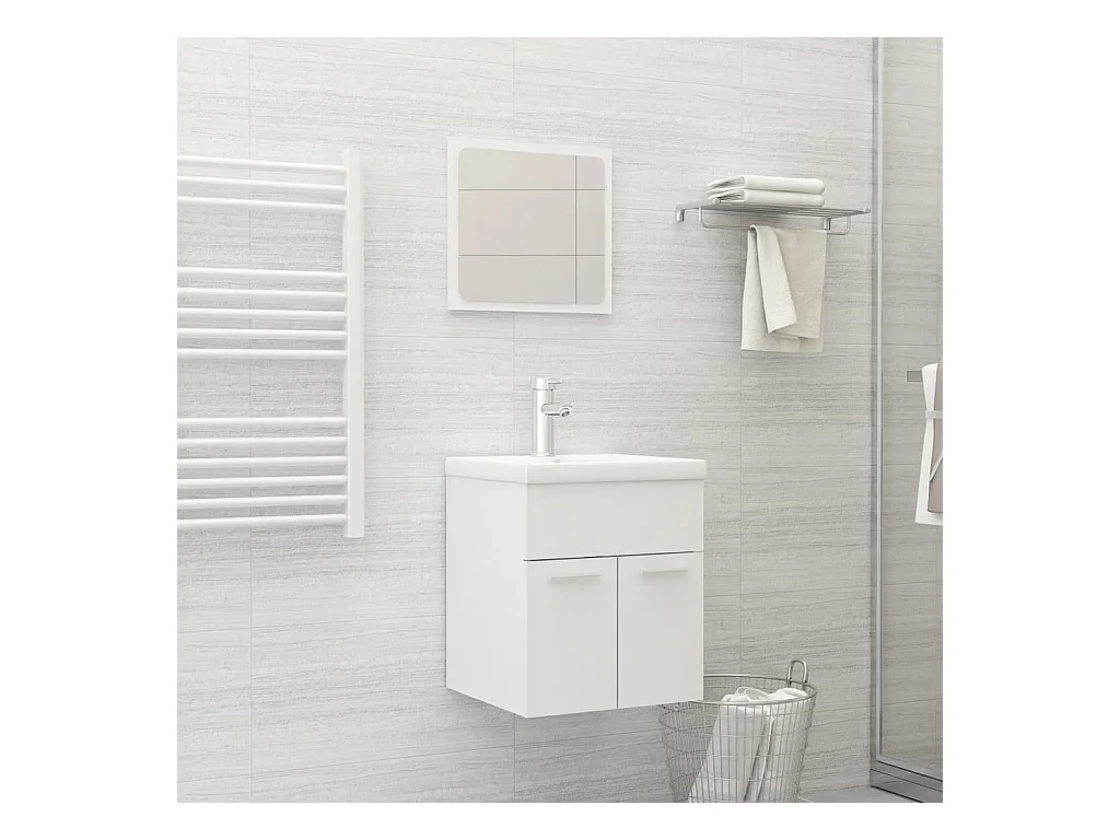 Conjunto de móveis de casa de banho em aglomerado branco brilhante