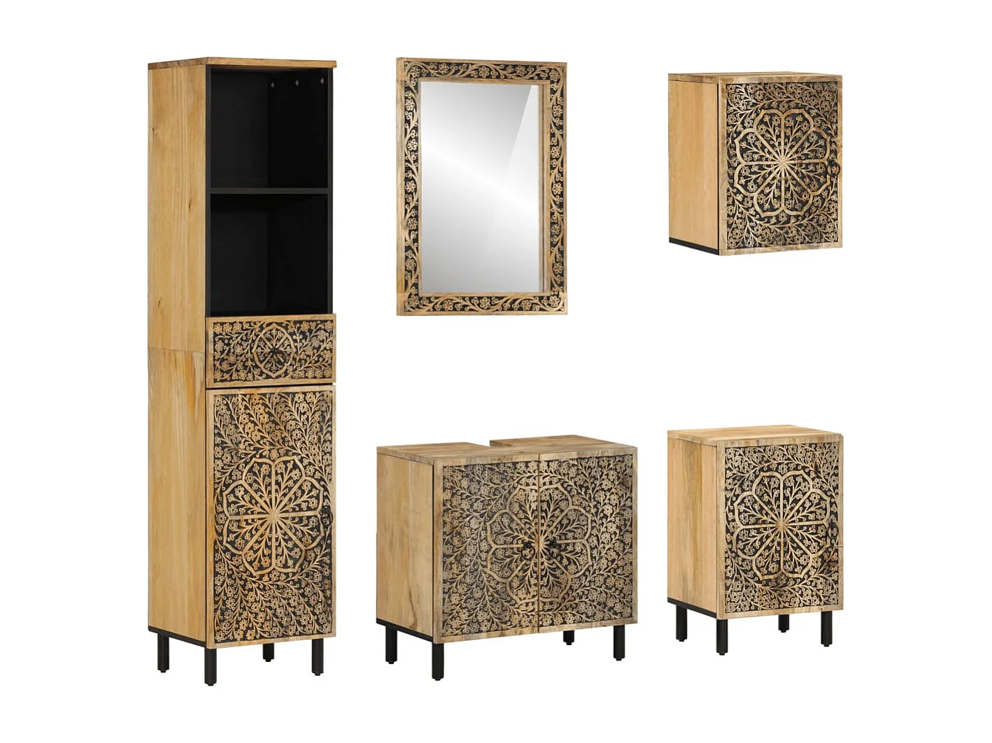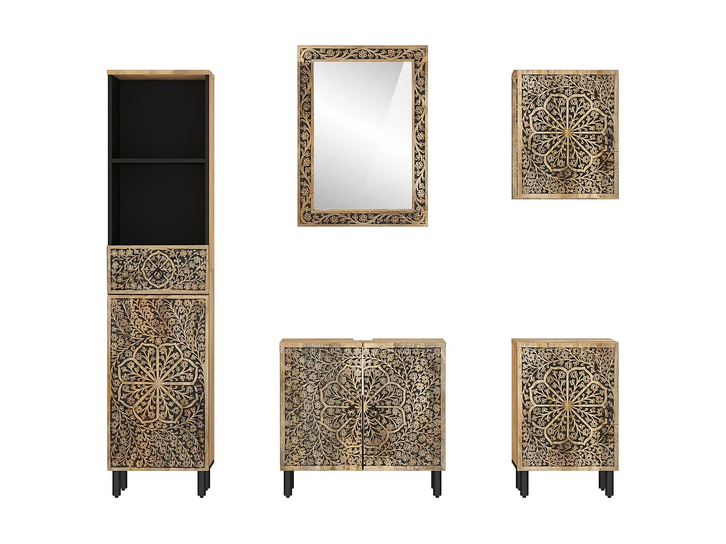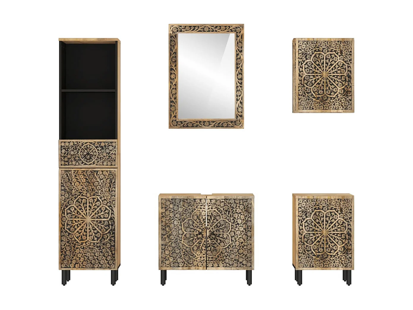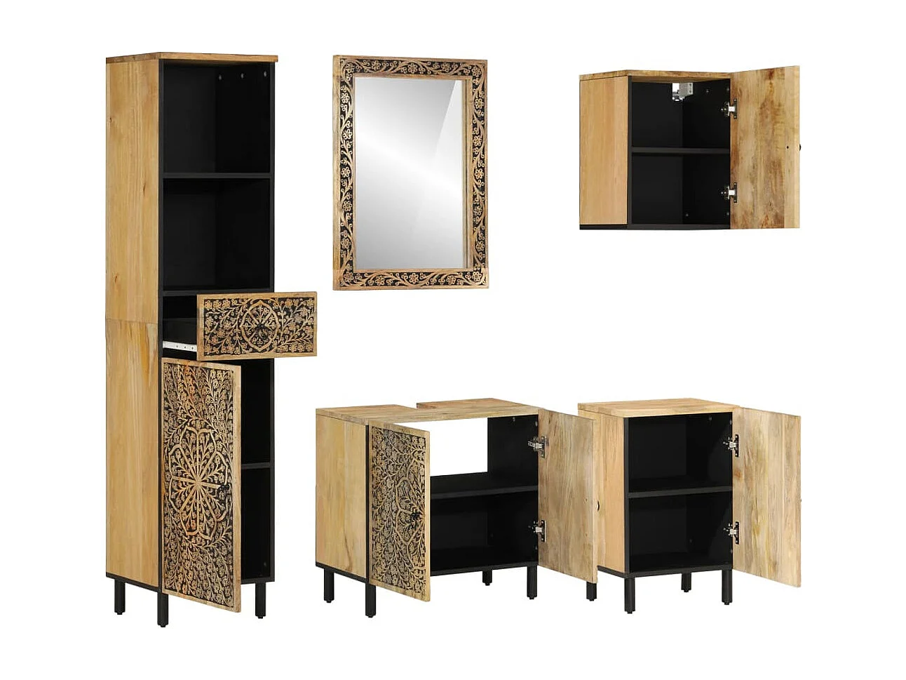 Conjunto de móveis de banheiro em madeira de mangueira maciça 4 unidades