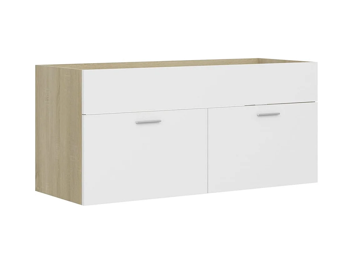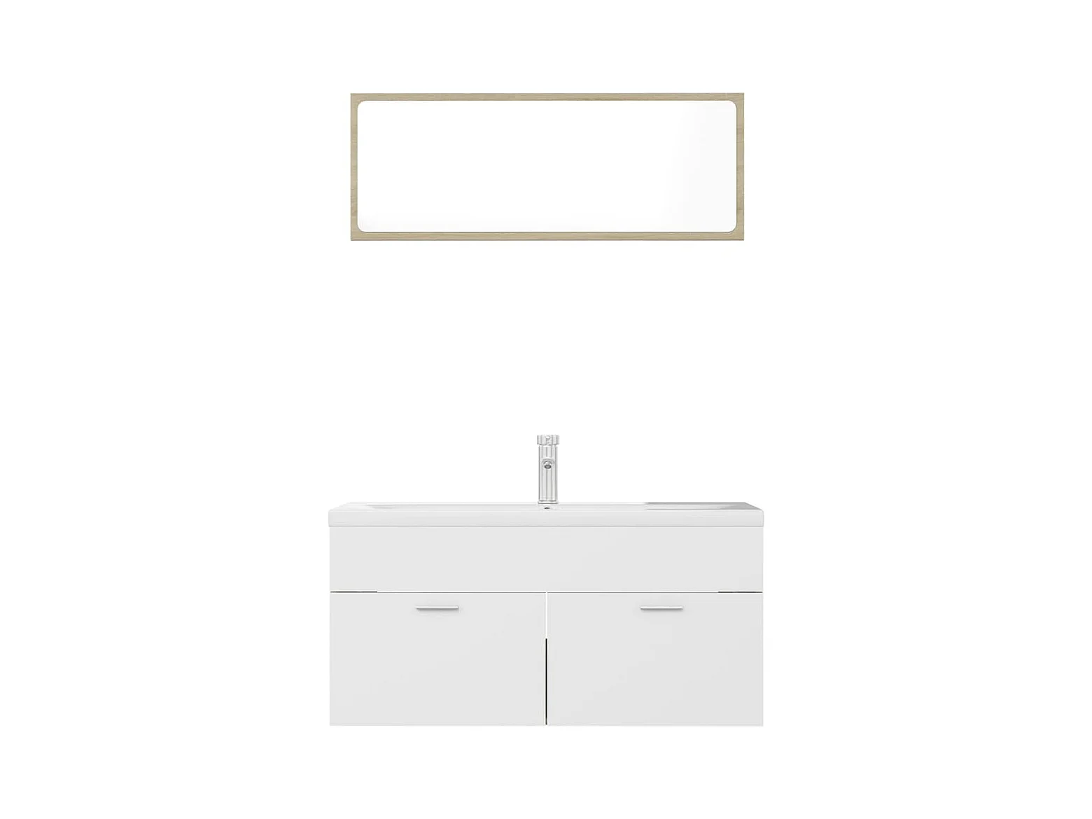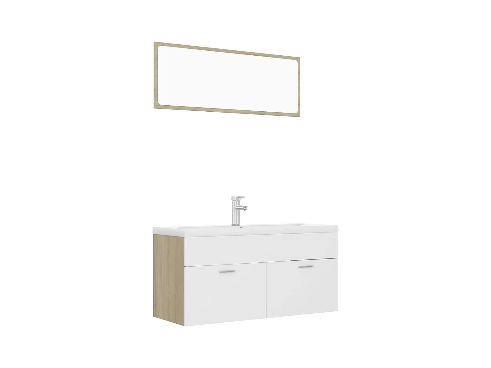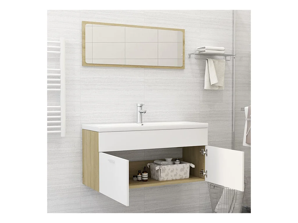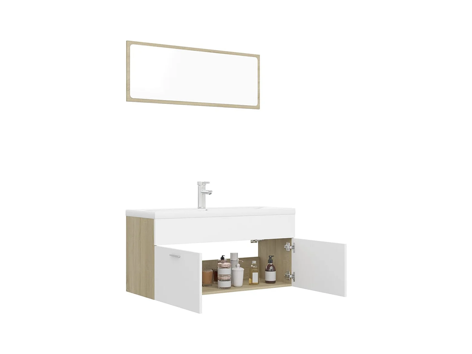 Conjunto de móveis de banho em aglomerado branco e carvalho sonoma