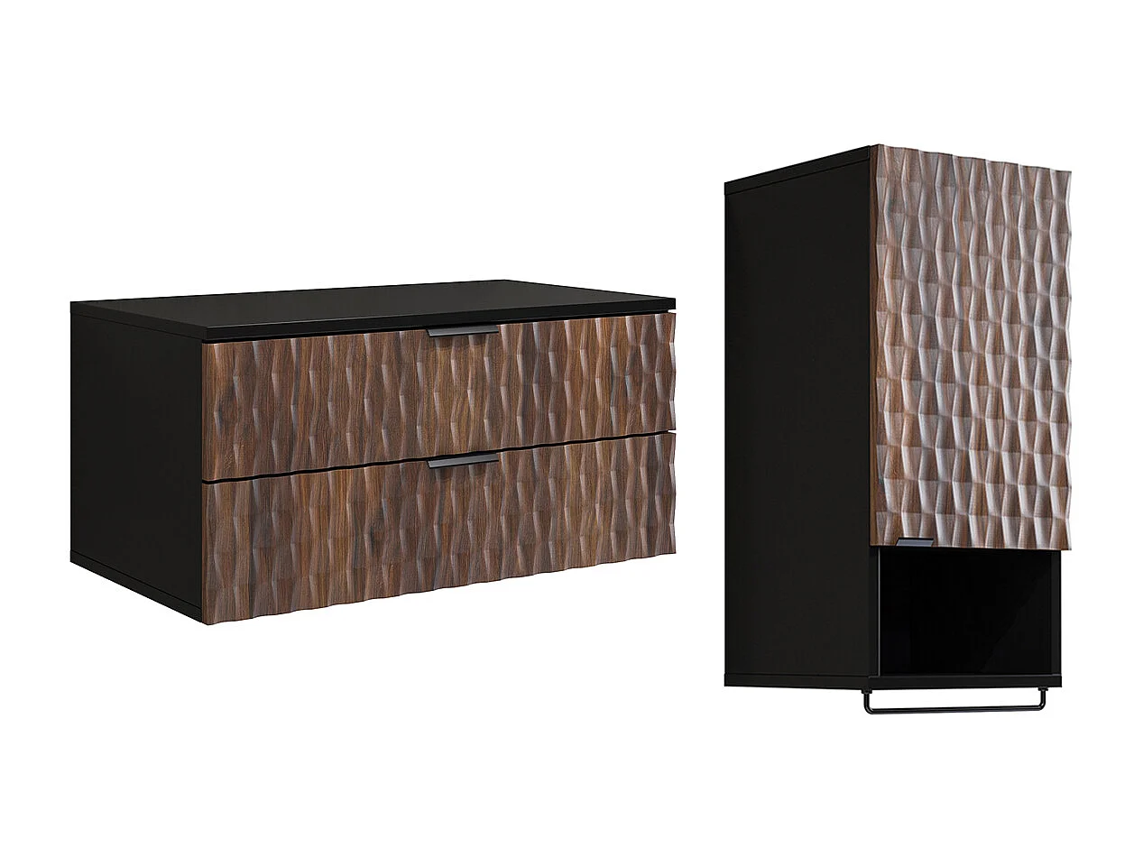 Conjunto de móveis de casa de banho com lavatório duplo Nevia madeira e preto