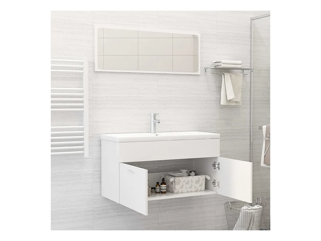 Conj. de móveis de casa de banho contraplacado branco brilhante PT198601