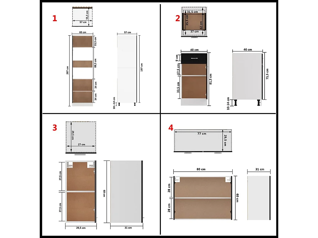 Conjunto de móveis de cozinha 8 peças em aglomerado preto