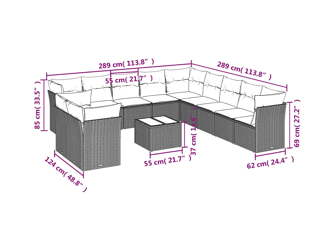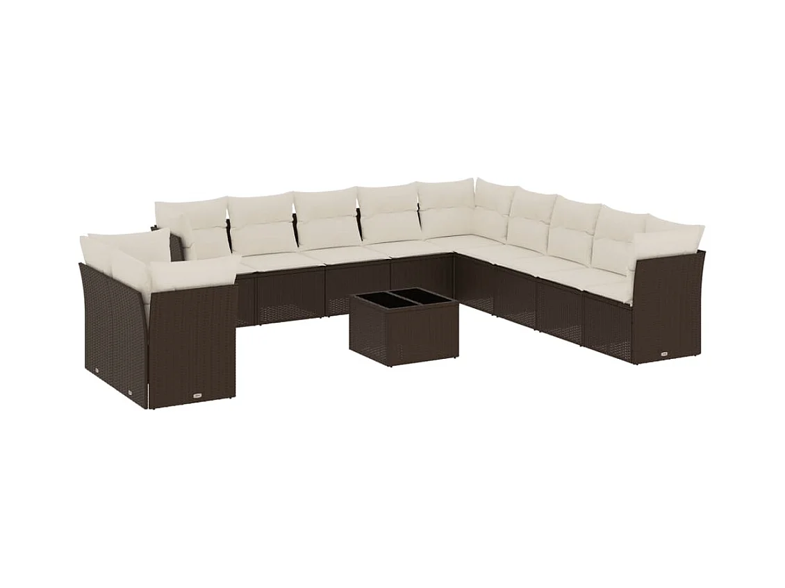 Conjunto de móveis de jardim com almofadas 12 peças resina trançada marrom