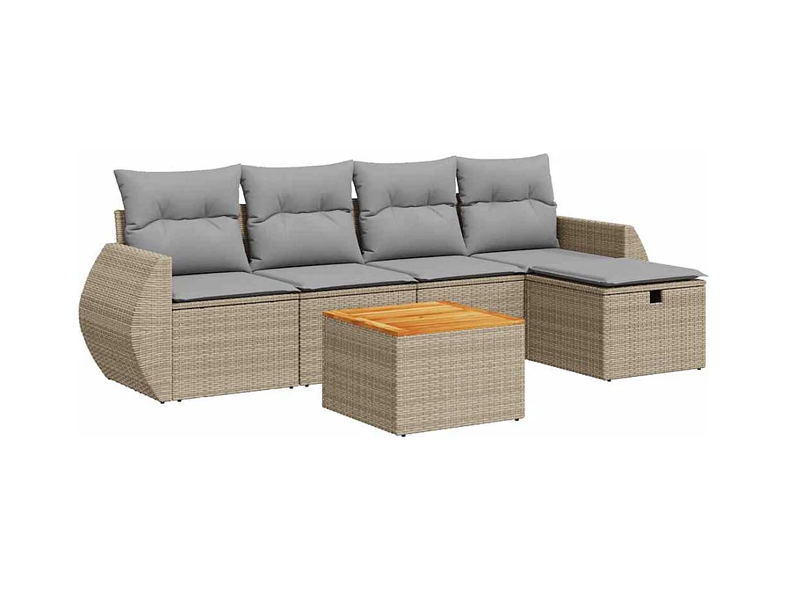 Conjunto de móveis de jardim com almofadas 6 peças resina tecida bege
