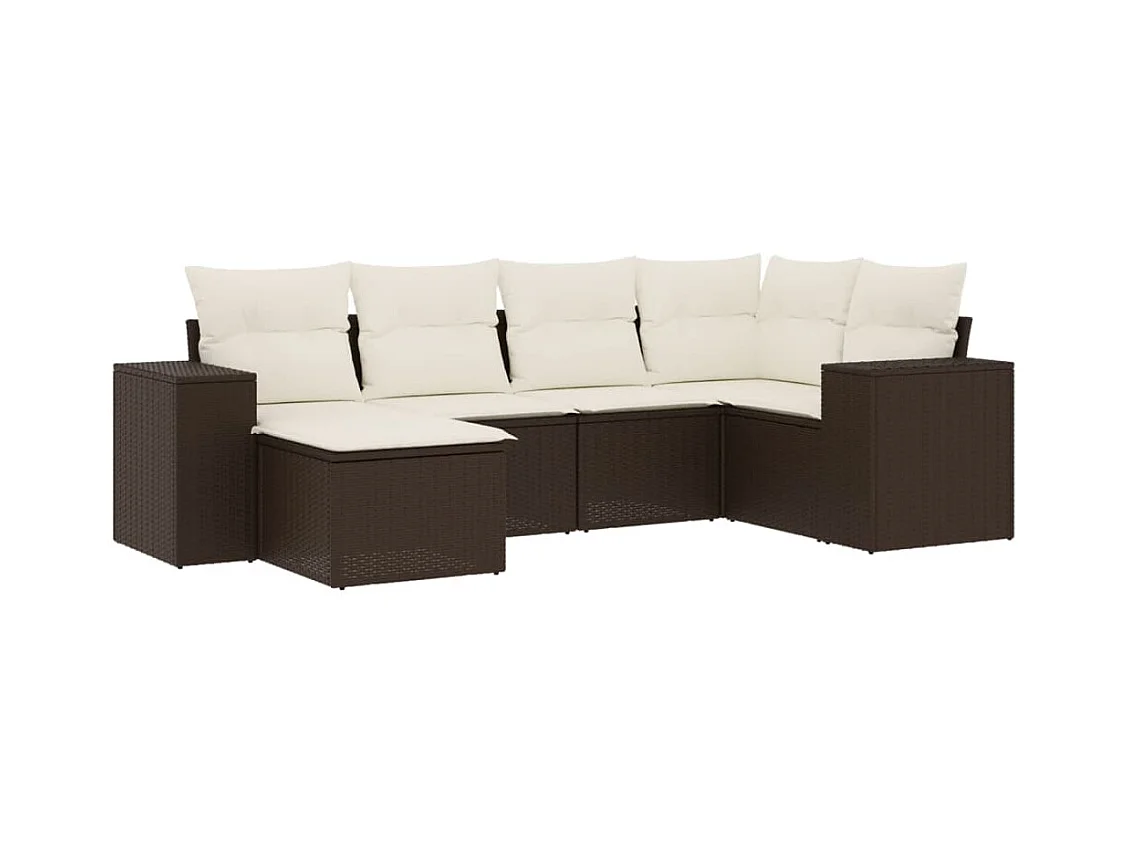 Conjunto de móveis de jardim com almofadas 6 peças resina trançada marrom