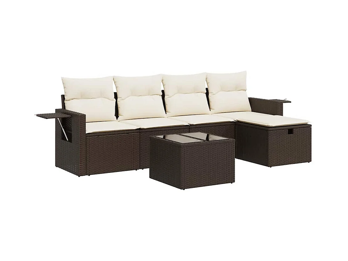 Conjunto de móveis de jardim com almofadas 6 peças resina trançada marrom