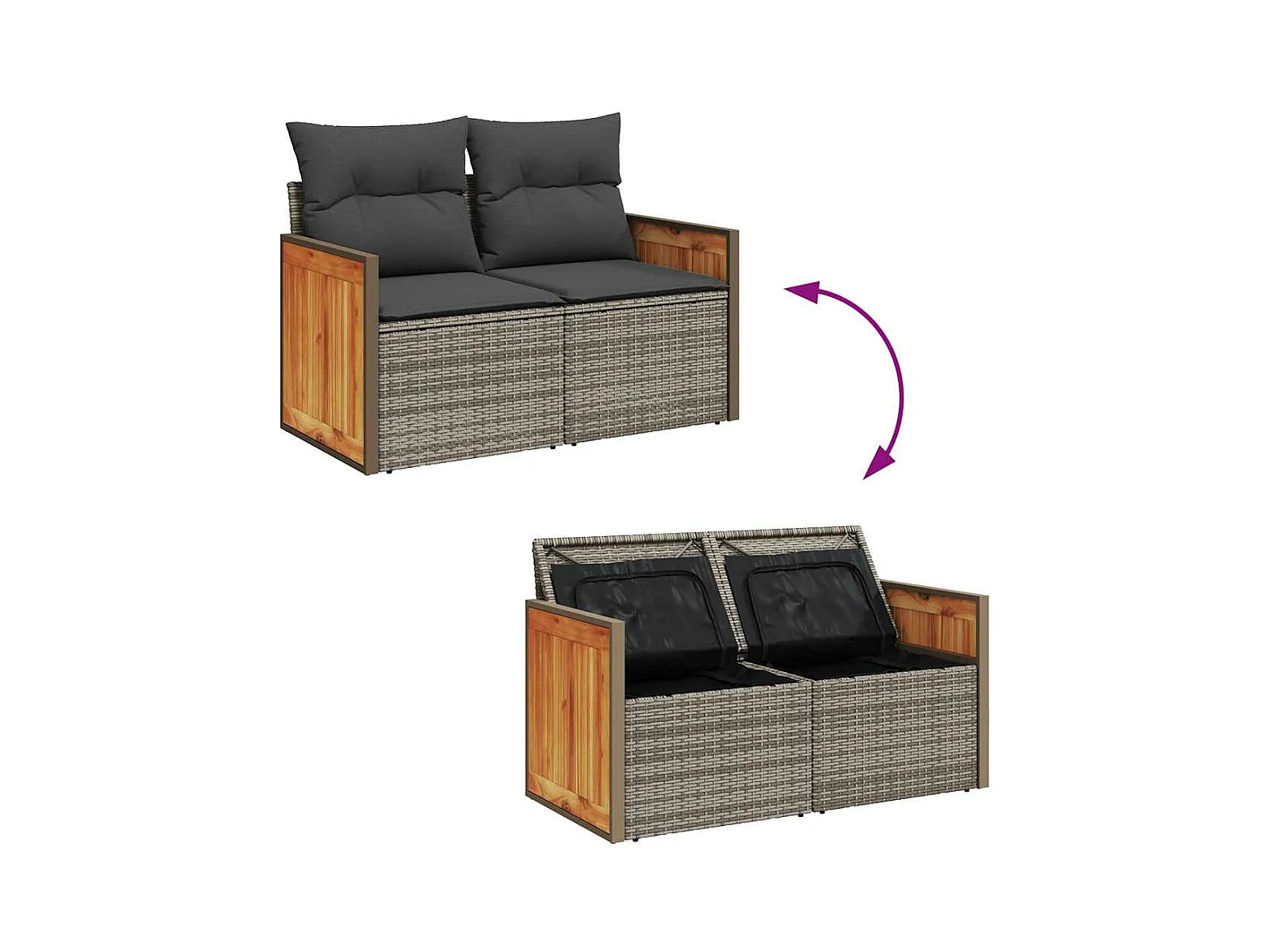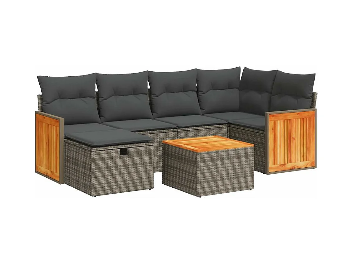 Conjunto de móveis de jardim com almofadas 7 peças resina trançada cinza