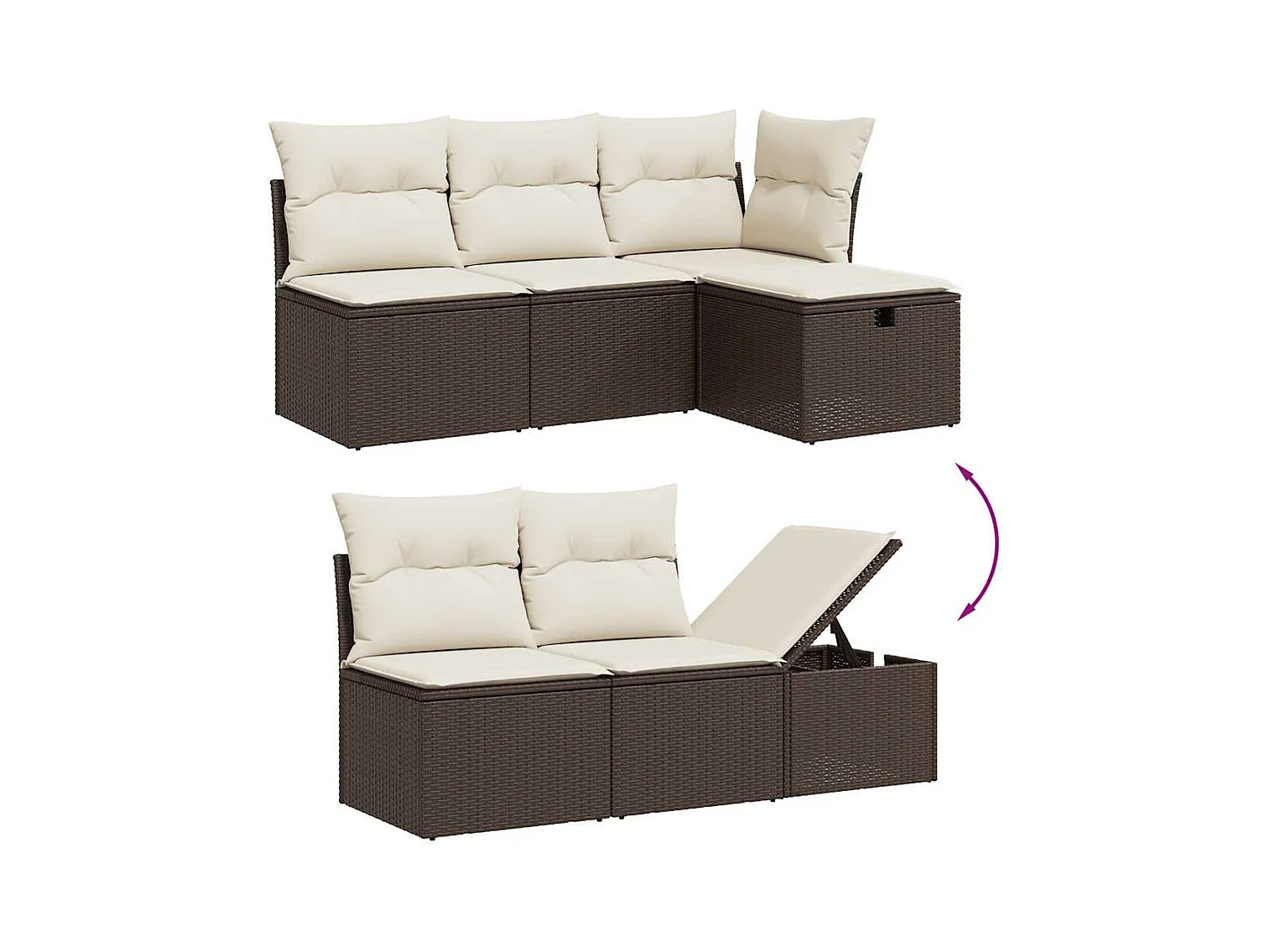 Conjunto de móveis de jardim de 4 peças com almofadas marrons em resina trançada