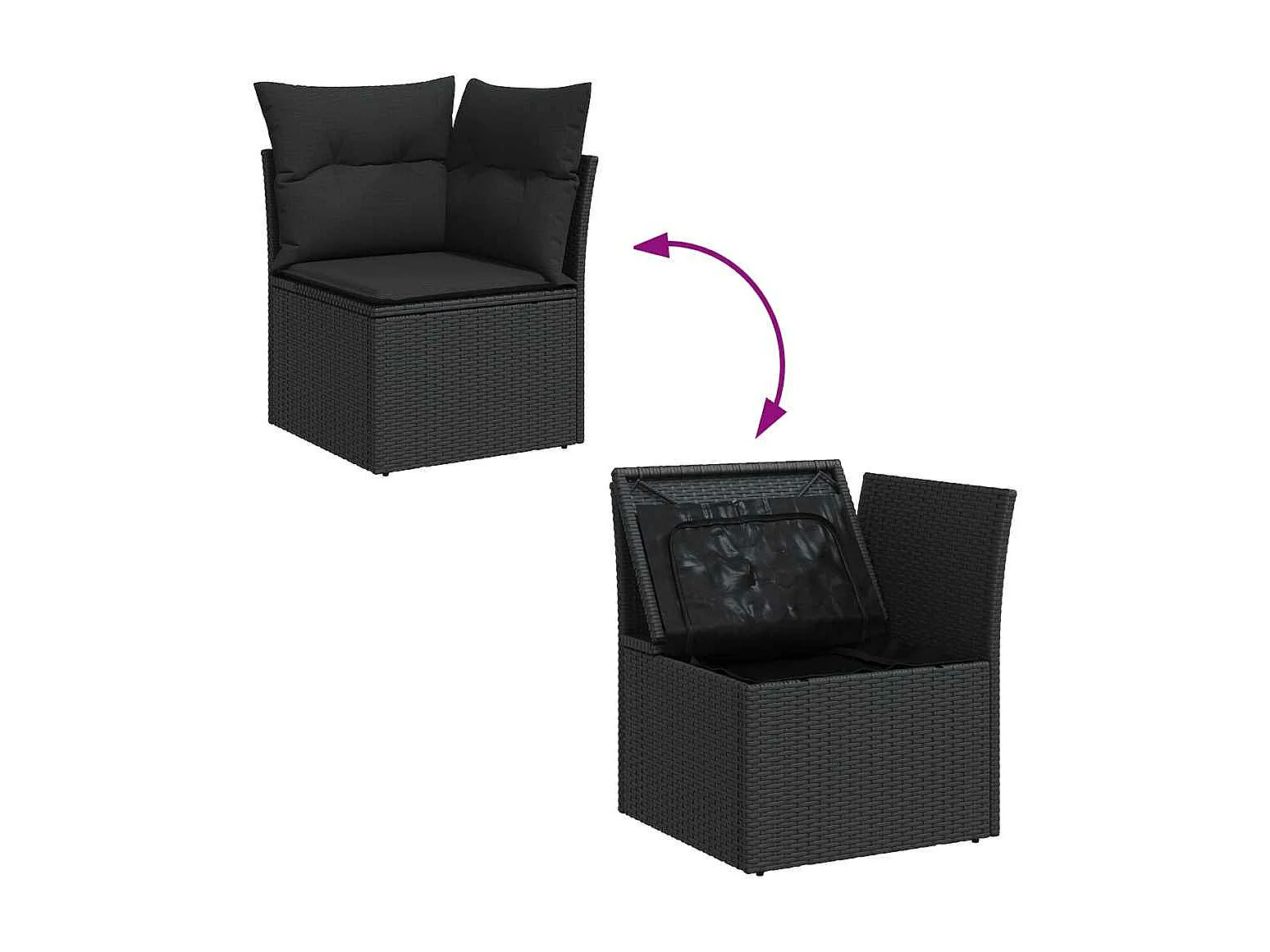 Conjunto de móveis de jardim de 7 peças com almofadas pretas em resina trançada