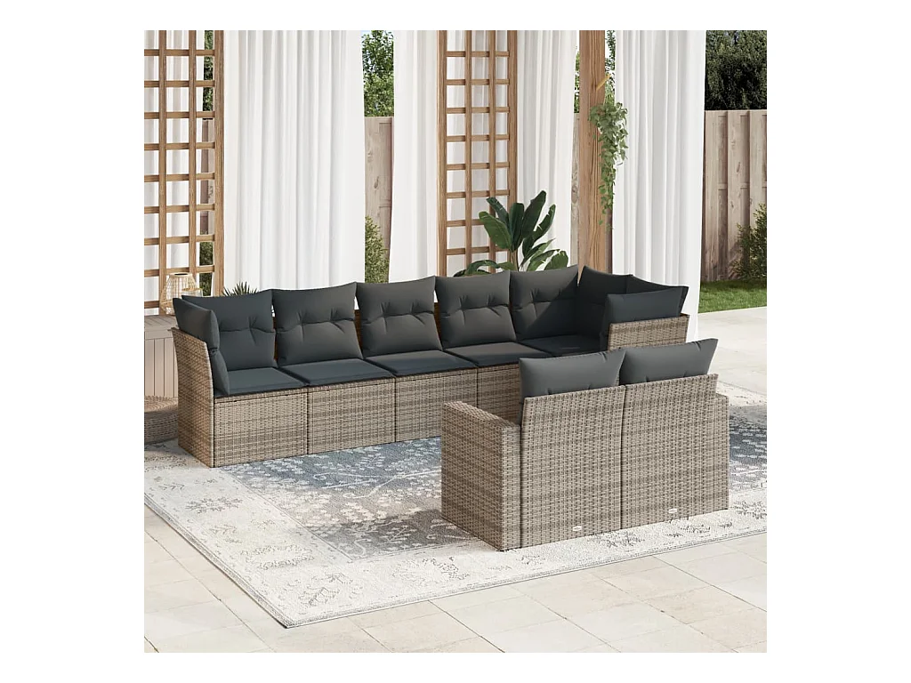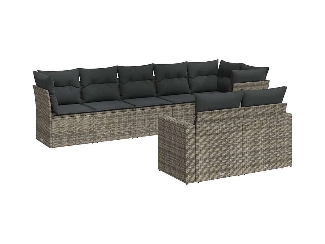 Conjunto de móveis de jardim de 8 peças com almofadas de vime de resina cinza