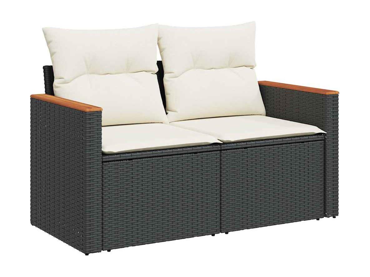 Conjunto de móveis de jardim de 9 peças com almofadas pretas em resina trançada