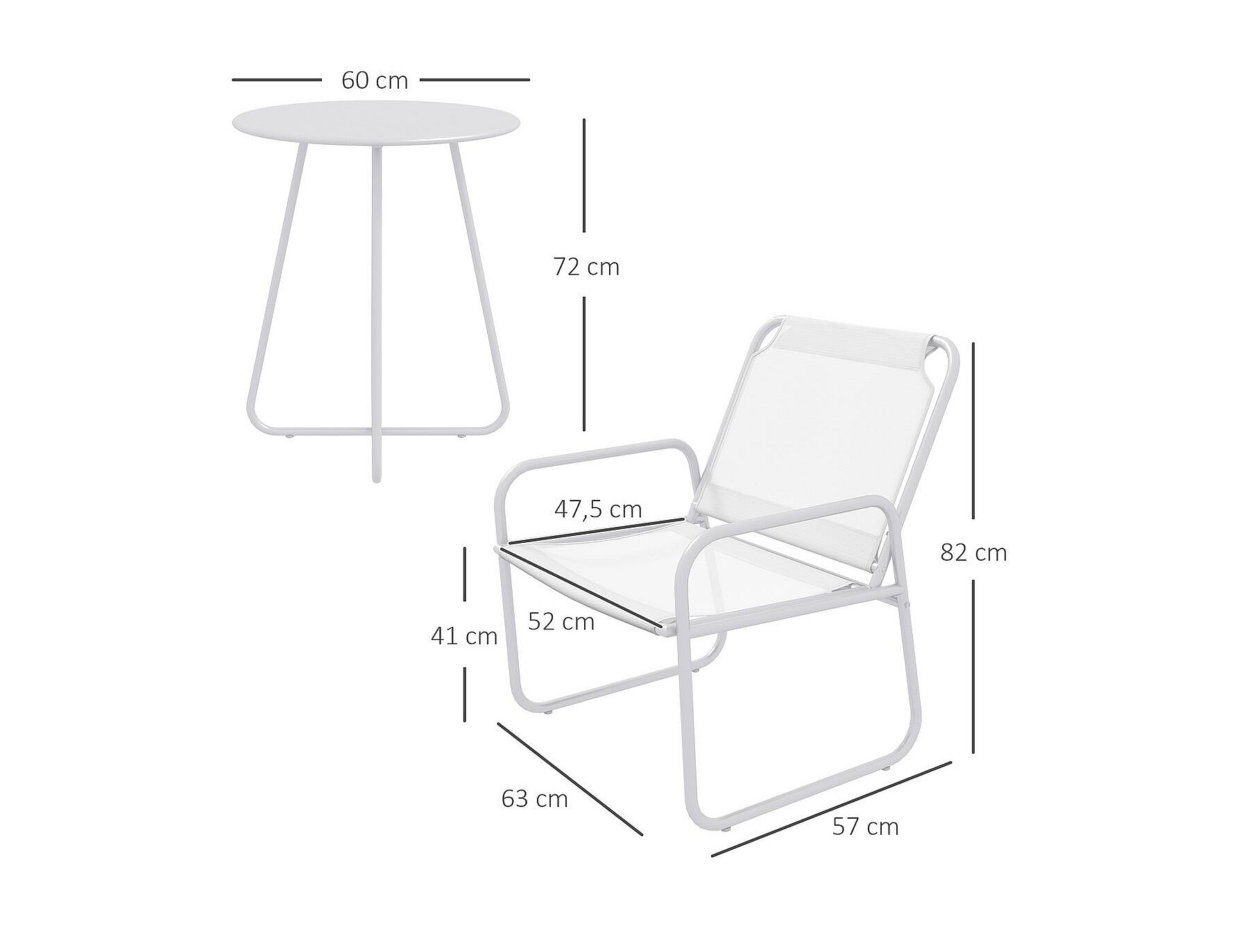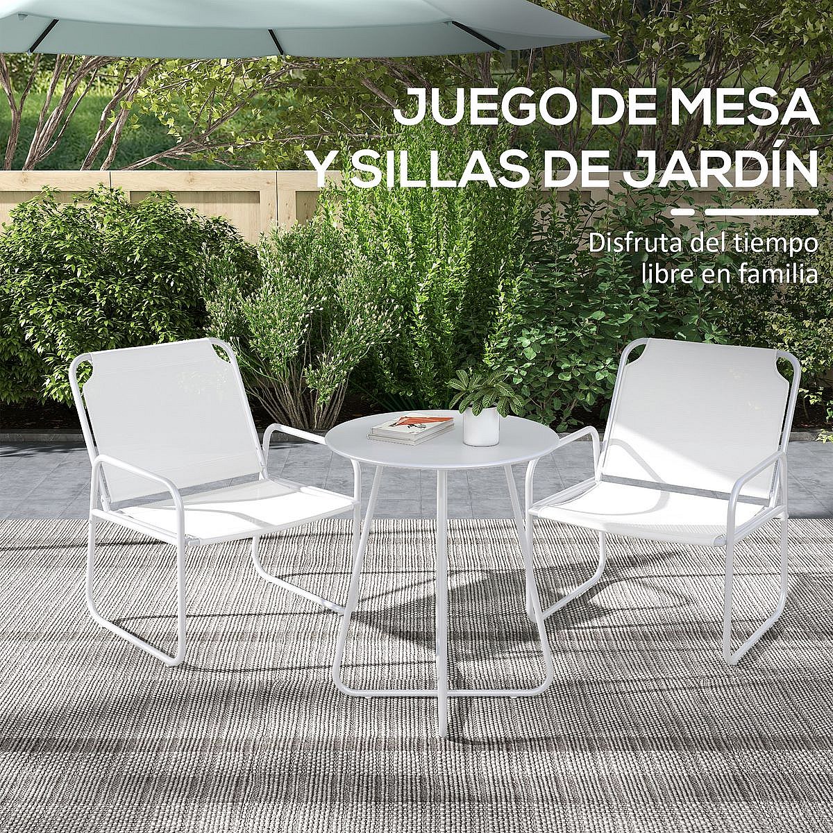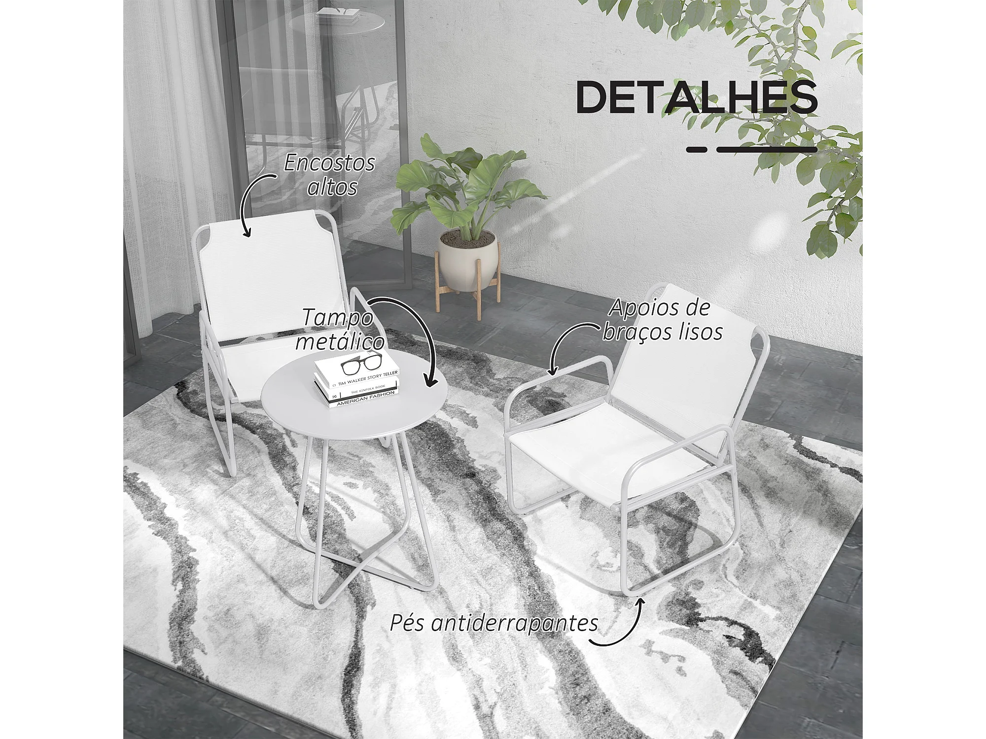 Conjunto de Móveis de Jardim Outsunny: Mesa Redonda e 2 Cadeiras com Almofadas Ajustáveis em Branco