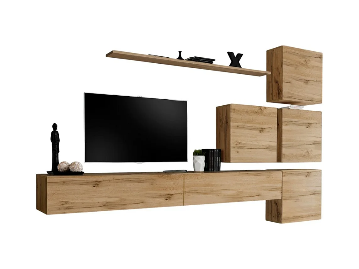 Conjunto de móveis de design para sala de estar SWITCH VI. Cor carvalho Wotan.