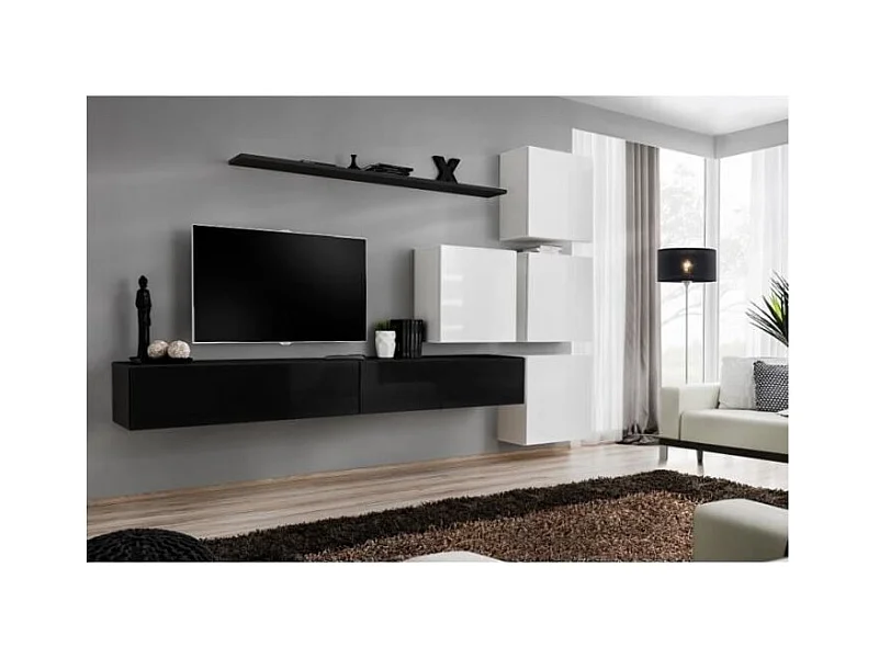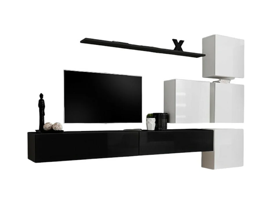Conjunto de móveis para sala de estar SWITCH VII design, nas cores preto e branco brilhante.
