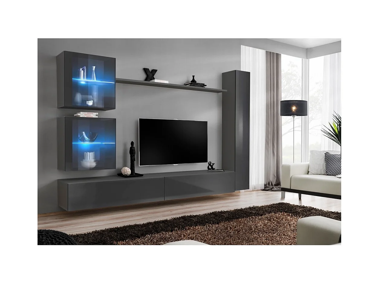 Conjunto de móveis de parede para sala de estar SWITCH XVIII, design moderno, na cor cinza brilhante.