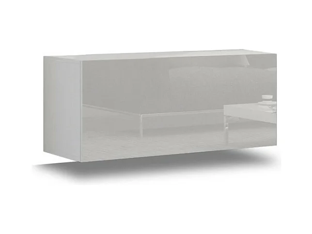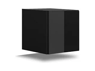Conjunto de móveis de sala de estar pretos e brancos suspensos, coleção CEPTO XIV. 256cm, 10 móveis, LEDs. Cubo de cor branca.
