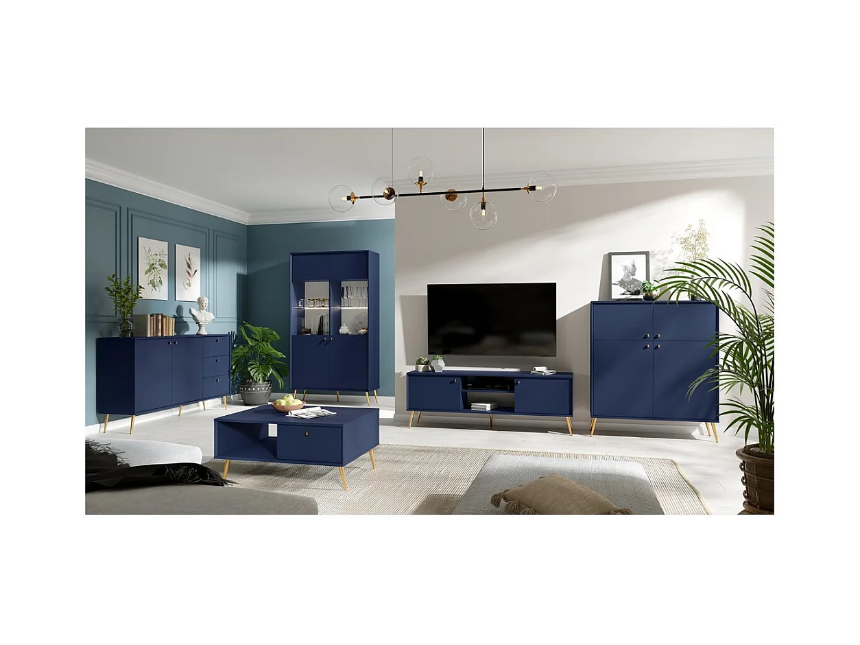 Conjunto de móveis design AZURÉA – Sala de jantar completa – Cor azul profundo