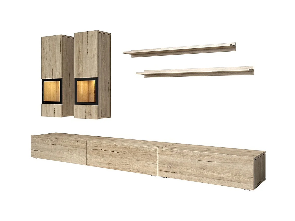 Conjunto de móveis de design para sala de estar SWITCH VI. Cor carvalho Wotan.
