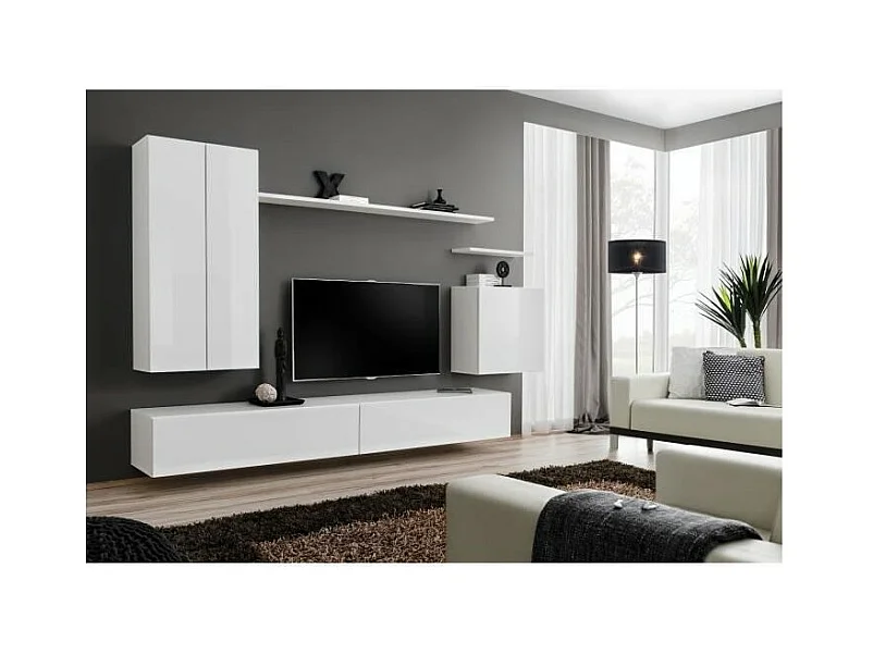 Conjunto de móveis para sala de estar coleção SWITCH II design, cor branco brilhante.