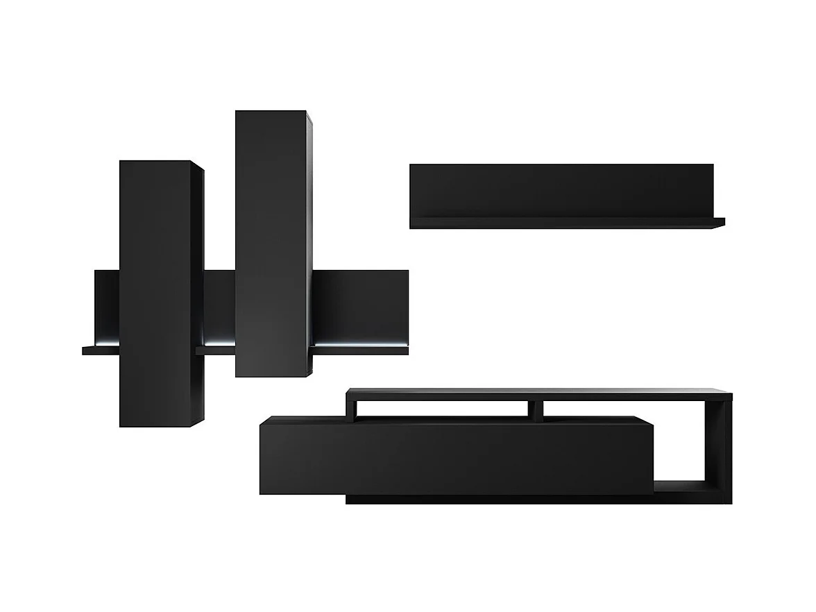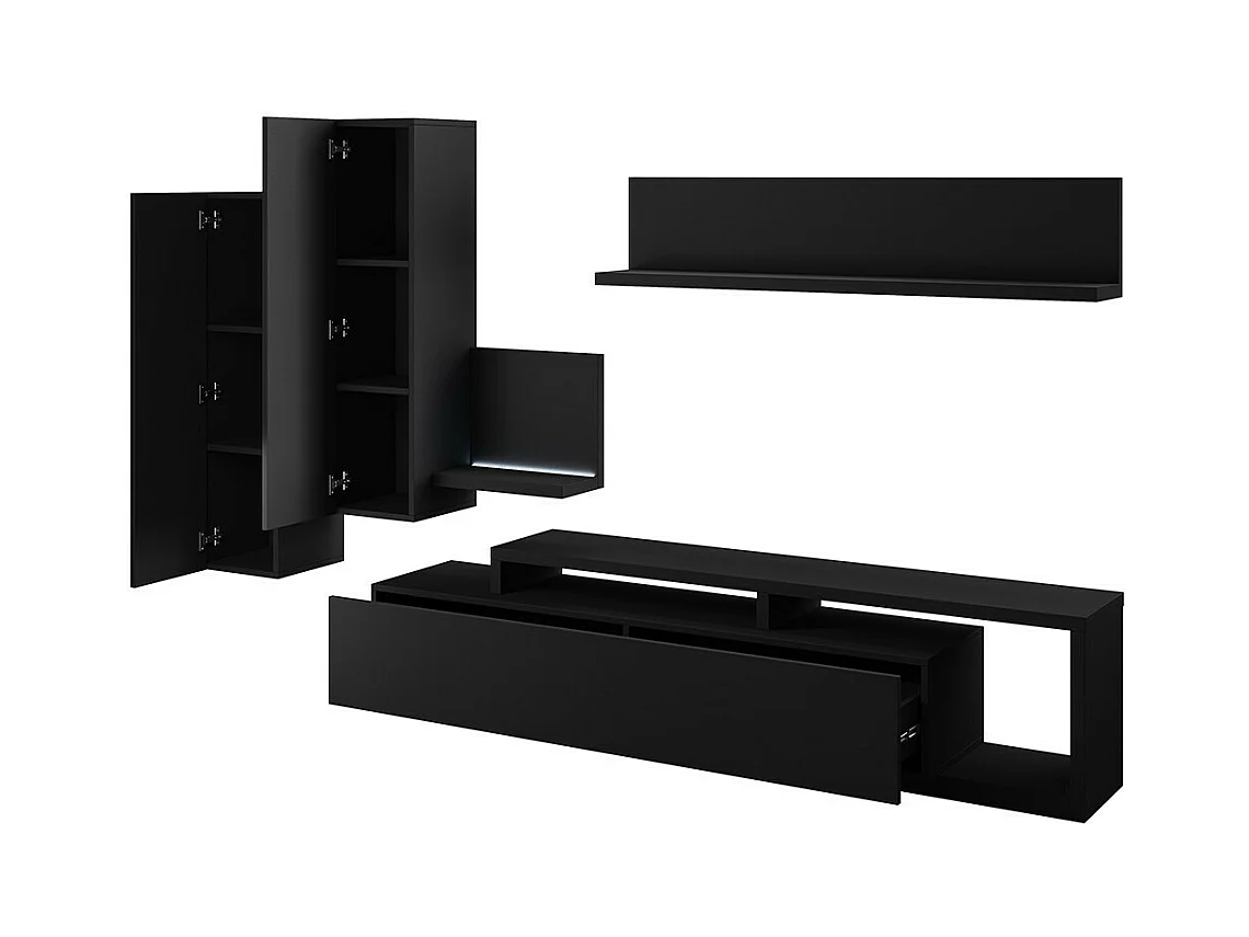 Conjunto de móveis para sala de estar com LED, coleção BERGAMO. Cor preto super fosco.
