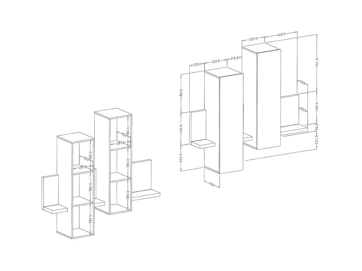 Conjunto de 7 móveis para sala de estar coleção RAMOS. Cor cinza efeito concreto e preto.