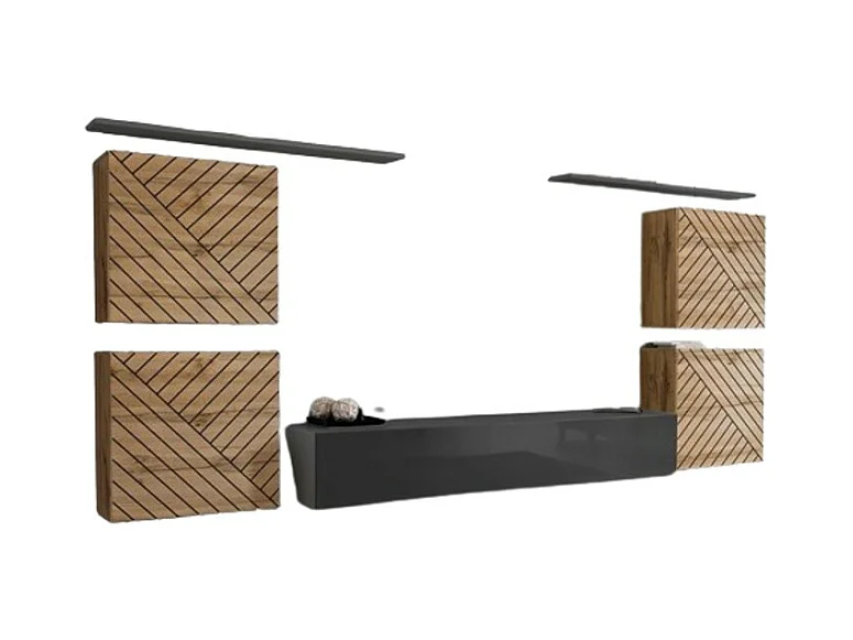 Conjunto de móveis para sala de estar SWITCH VII design, cor carvalho Wotan e preto brilhante.