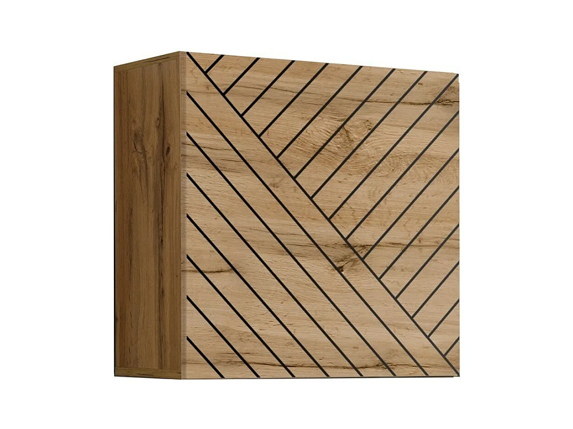 Conjunto de móveis suspensos para sua sala de estar da coleção SWITCH V. Cores carvalho Wotan e branco brilhante.